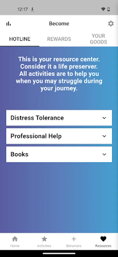 Do you want to make a change in your life? Stop smoking, save money instead of spending it, or be a better friend? Become is a revolutionary behavior change program capable of increasing your readiness and success at changing many behaviors. Become is based on a widely accepted therapy approach used by psychologists. You pick the behavior you want to change, tell Become your current motivation to change the behavior, and Become provides you with effective therapeutic activities to increase the likelihood you will make a successful change. Become includes up to 70 different therapeutic activities and can be used alone or in addition to counseling. This app is free and was created by Department of Defense and Veteran’s Affairs psychologists as well as experts from several universities.
