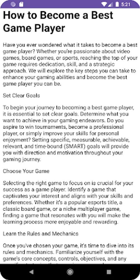 So, why wait? Download Become Best Gamer: Simple Tips now and embark on your journey to gaming excellence. Unlock your full potential, learn from the best, and become a formidable player in your favorite games. With this app as your companion, you'll be equipped with the knowledge and strategies to conquer any gaming challenge that comes your way.