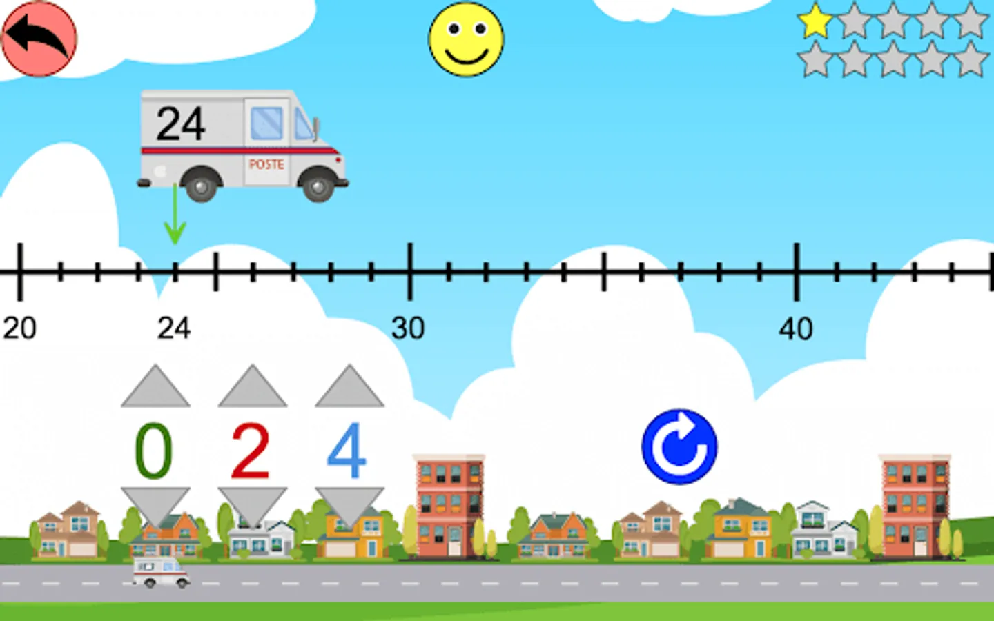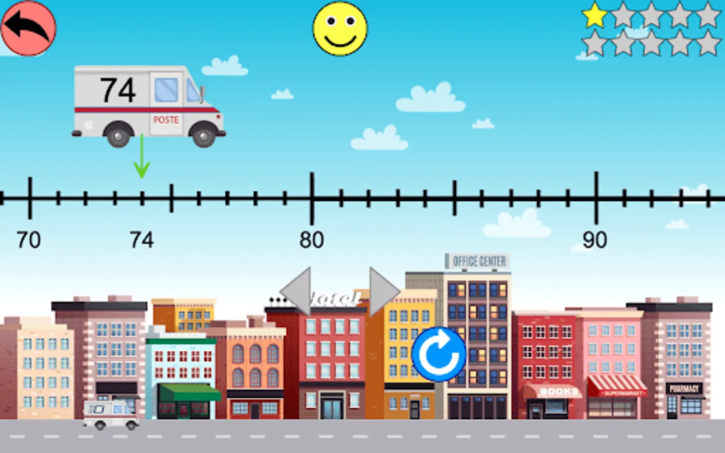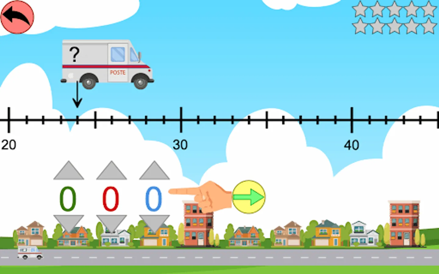 - the child must place the number written on the truck on the graduated half-line.