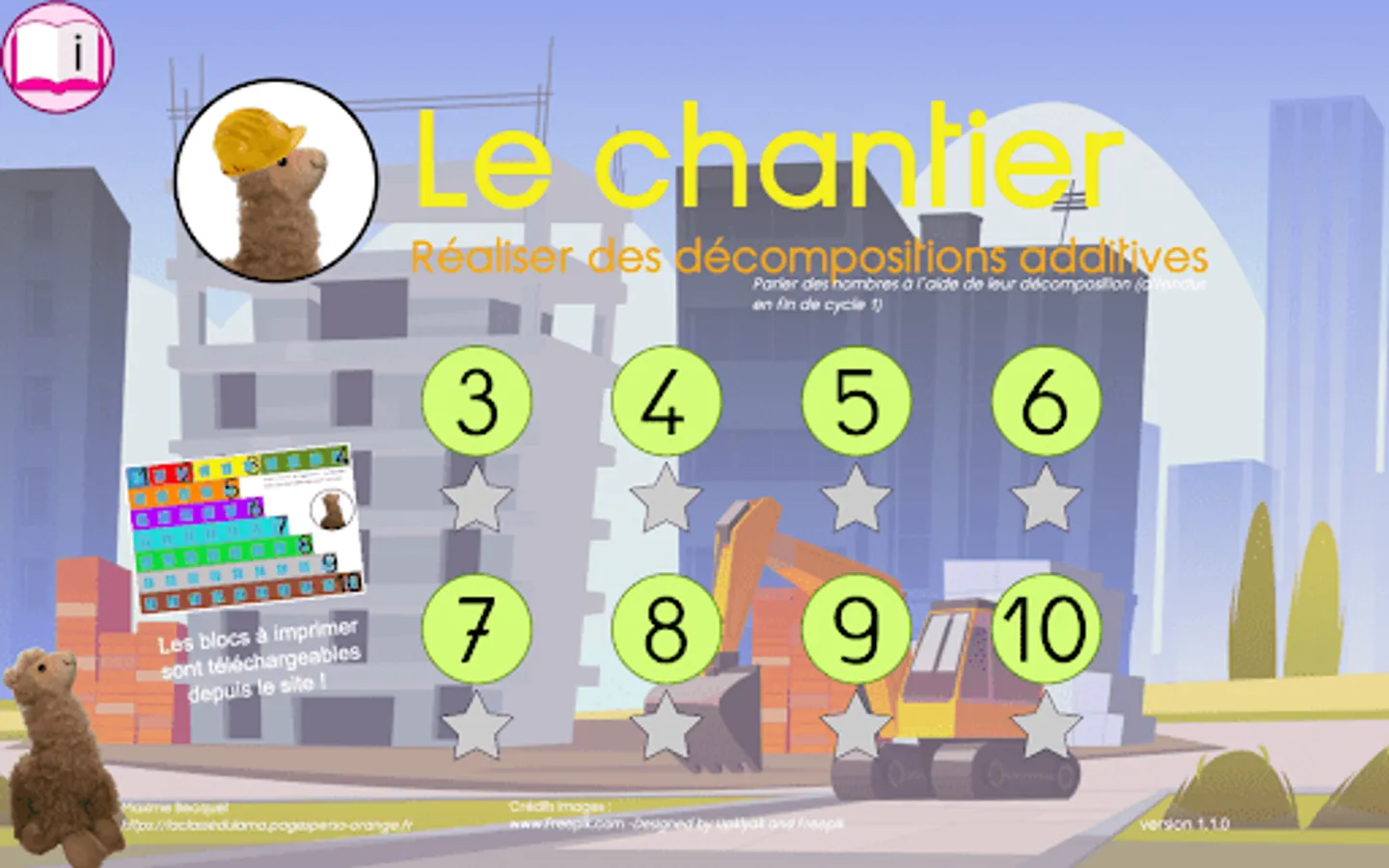The site proposes to build the numbers from 3 to 10 in the form of decompositions.