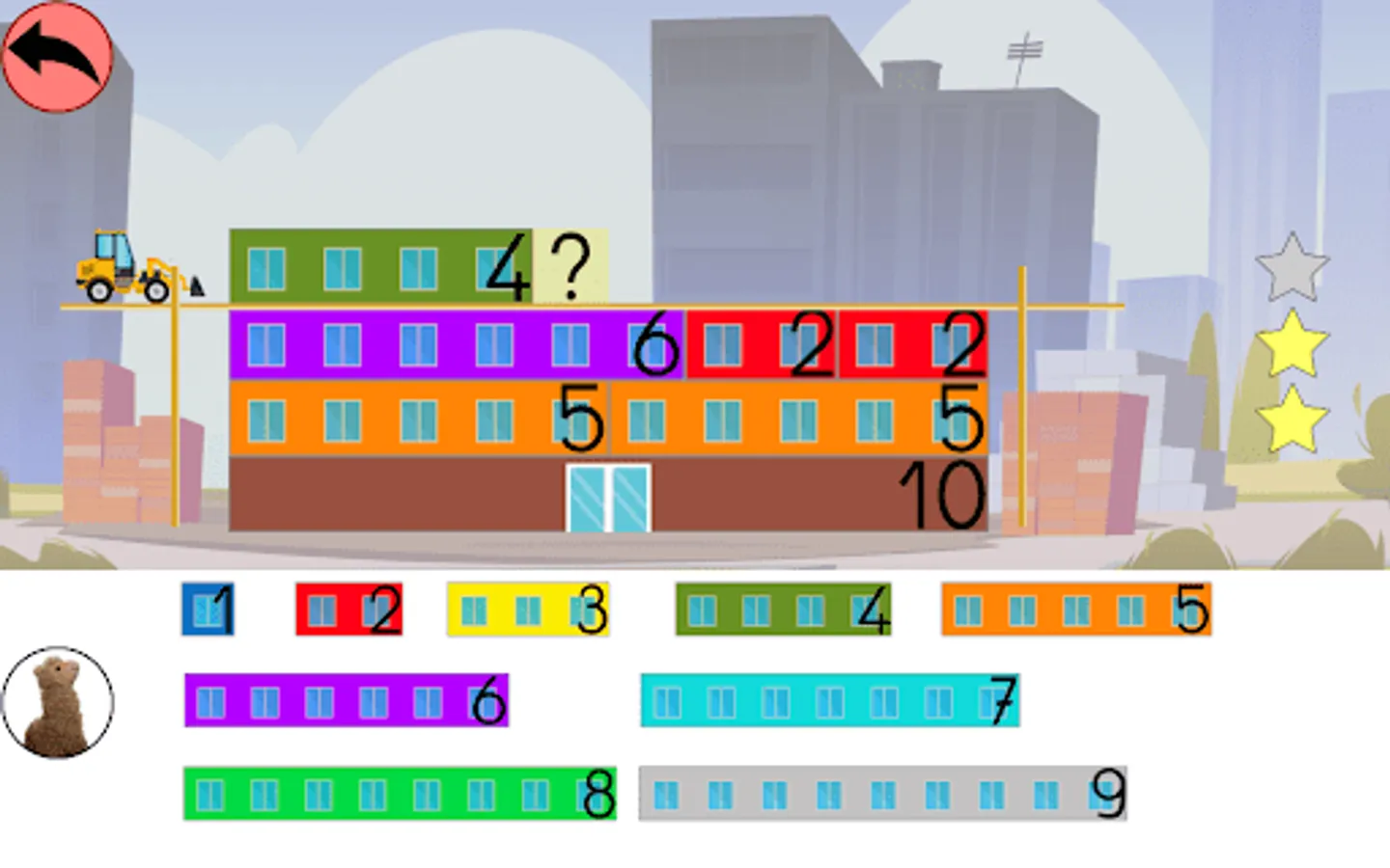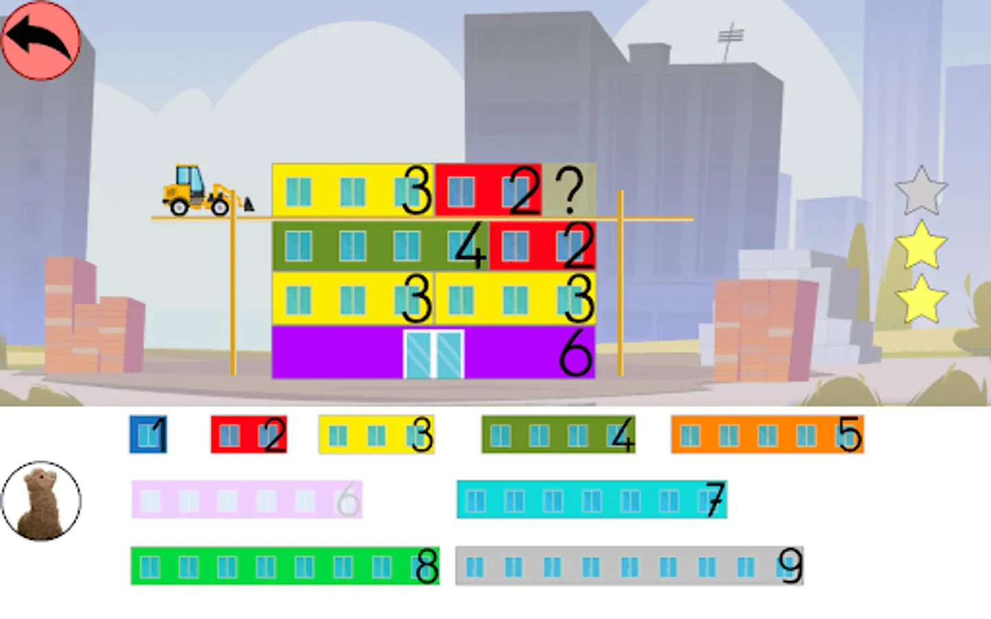 After choosing a target number, the child must build several floors by clicking on the blocks.