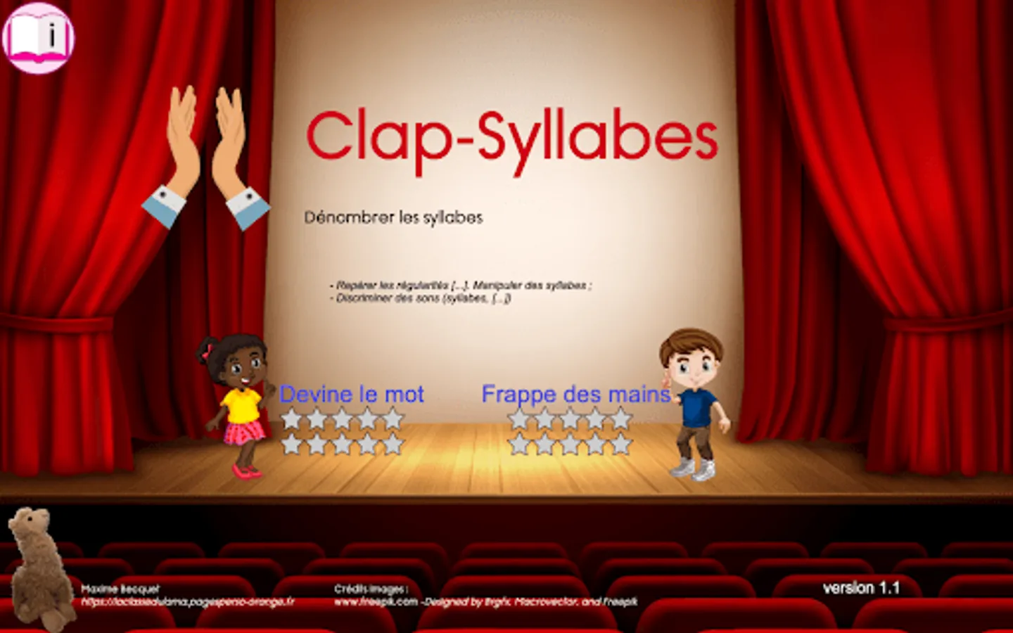 Clap-syllables is an adaptation of the famous exercise practiced from kindergarten and elementary school.