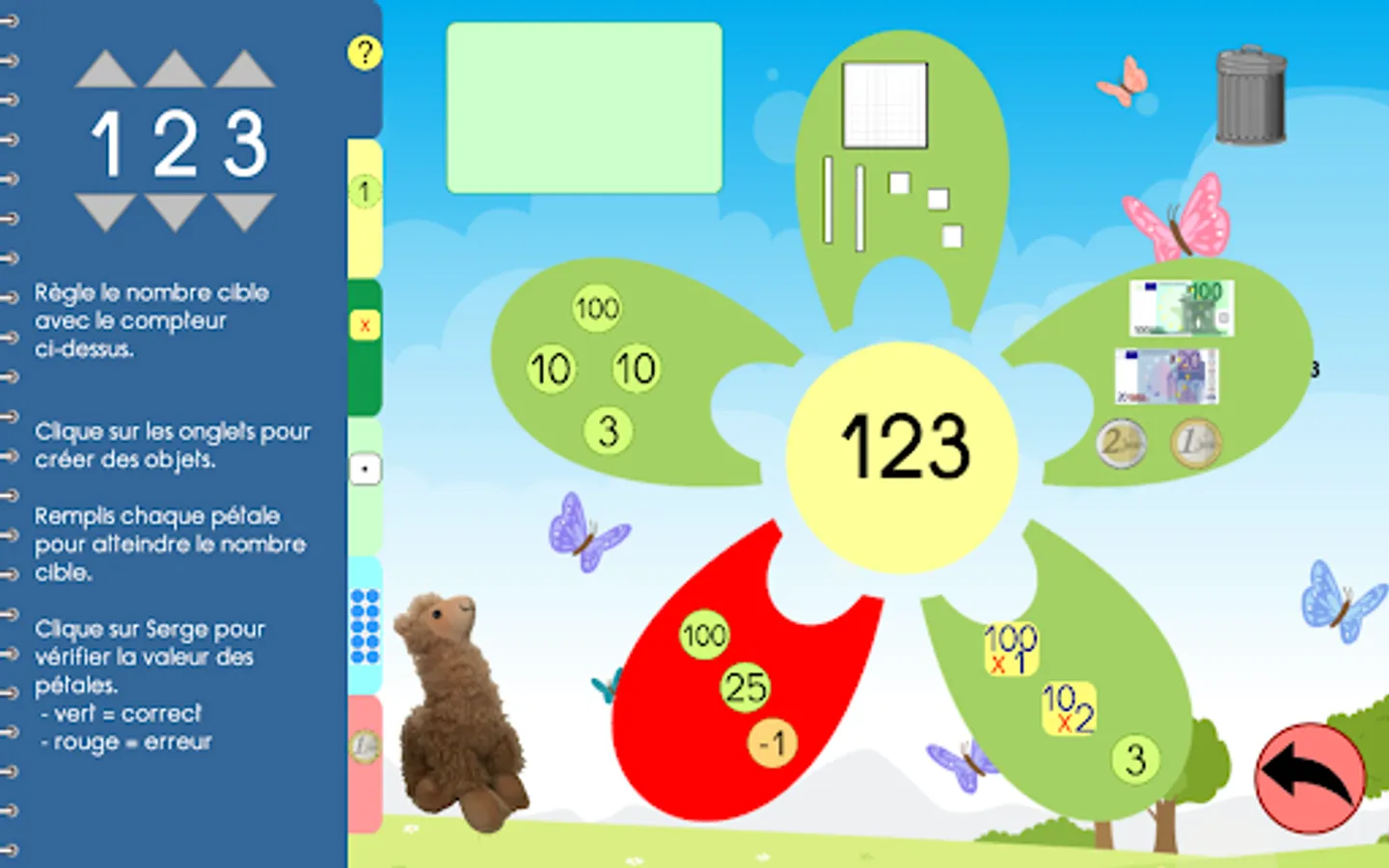 To check the answers, just click on Serge the llama under the flower (green = ok, red = error).