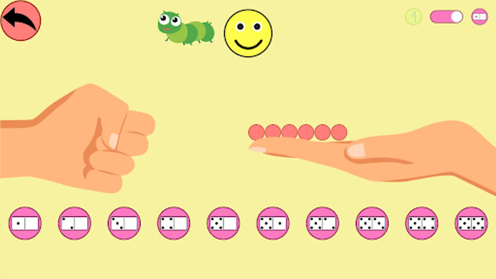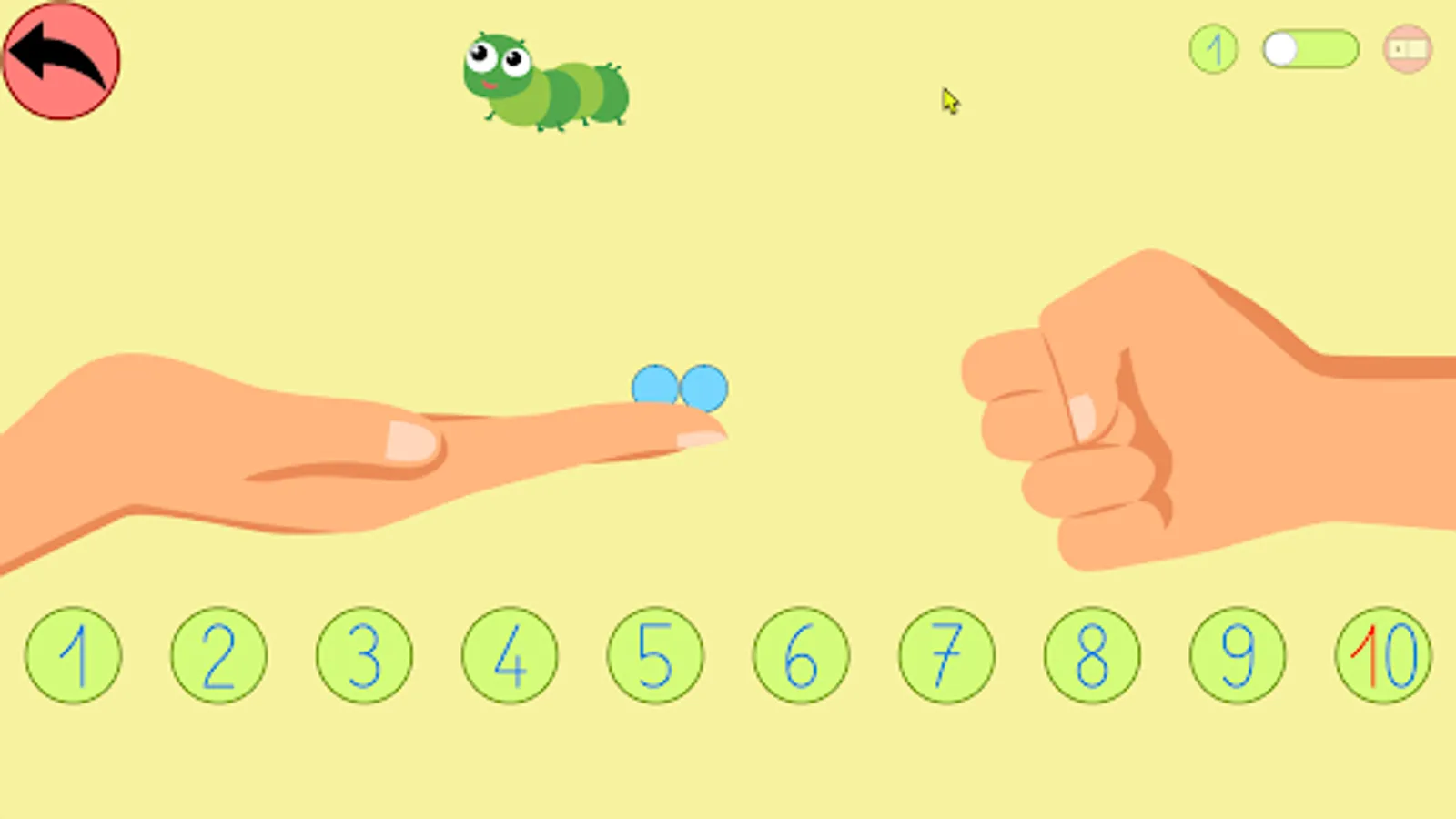 - Both hands open in turn. The child must count and memorize the number of counters.