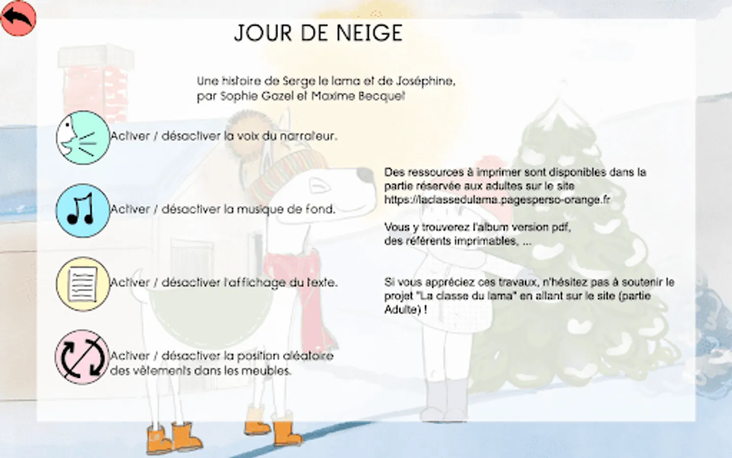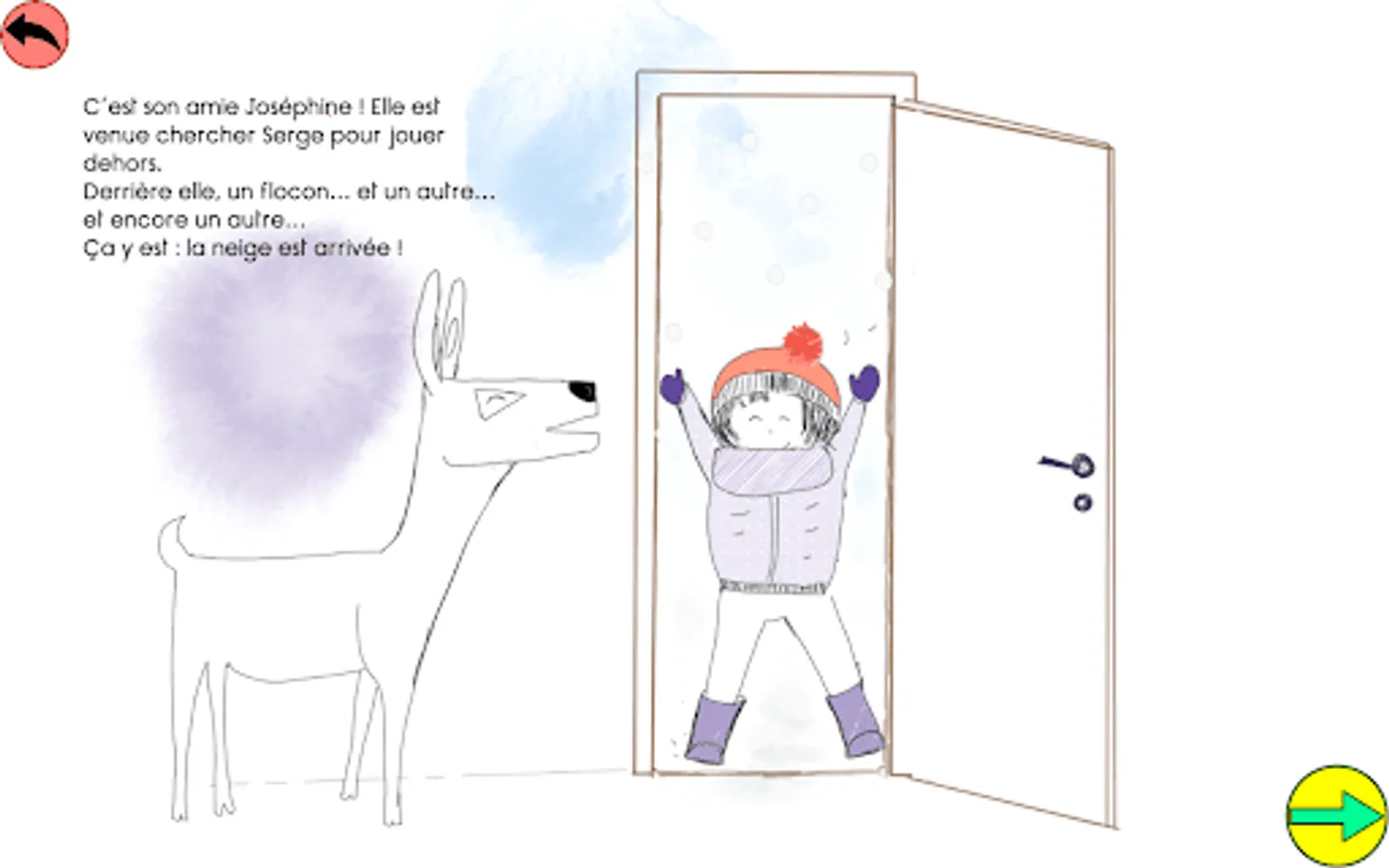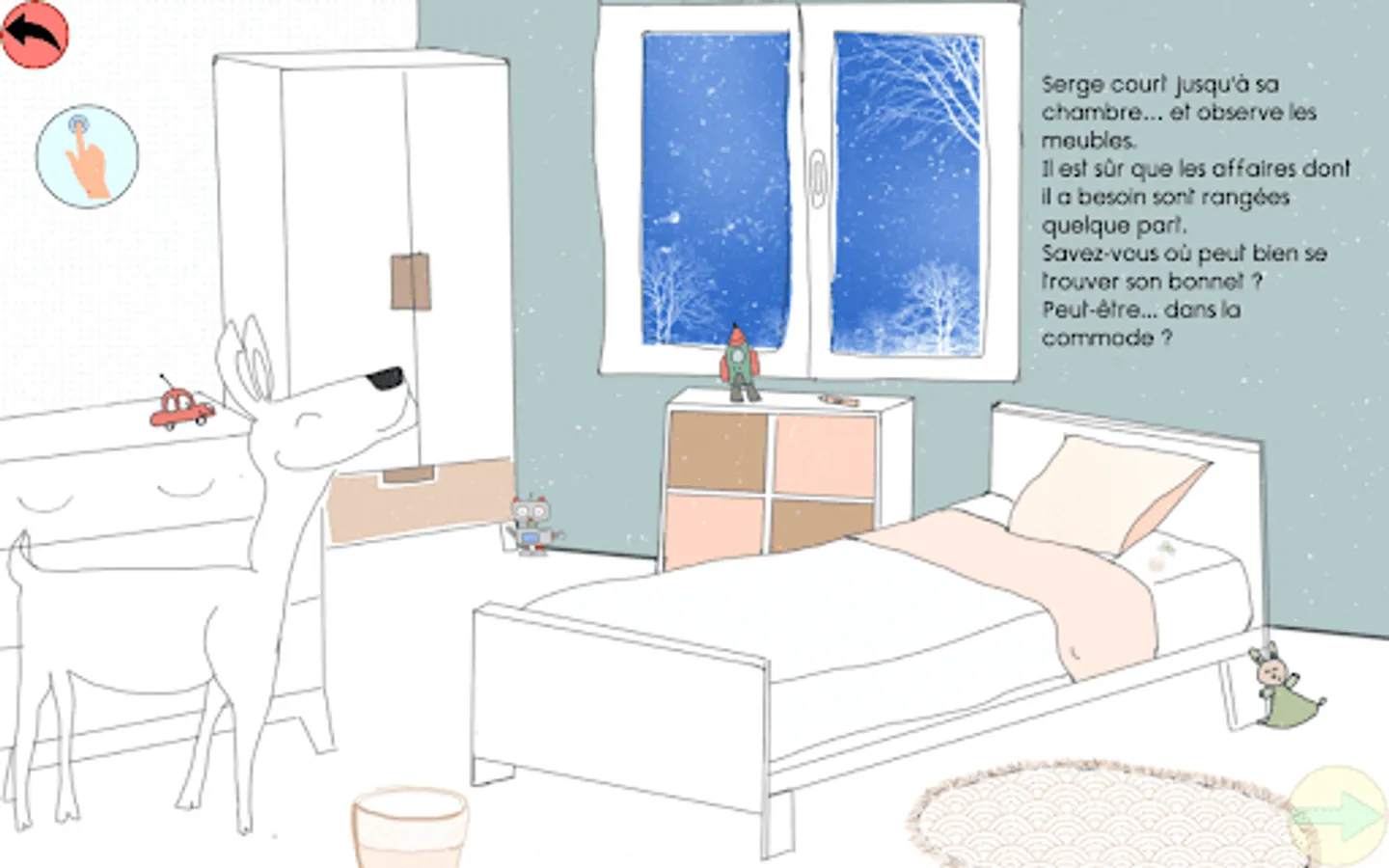Snow Day is an interactive story: help Serge find his clothes so he can go outside and play with his friend Josephine.