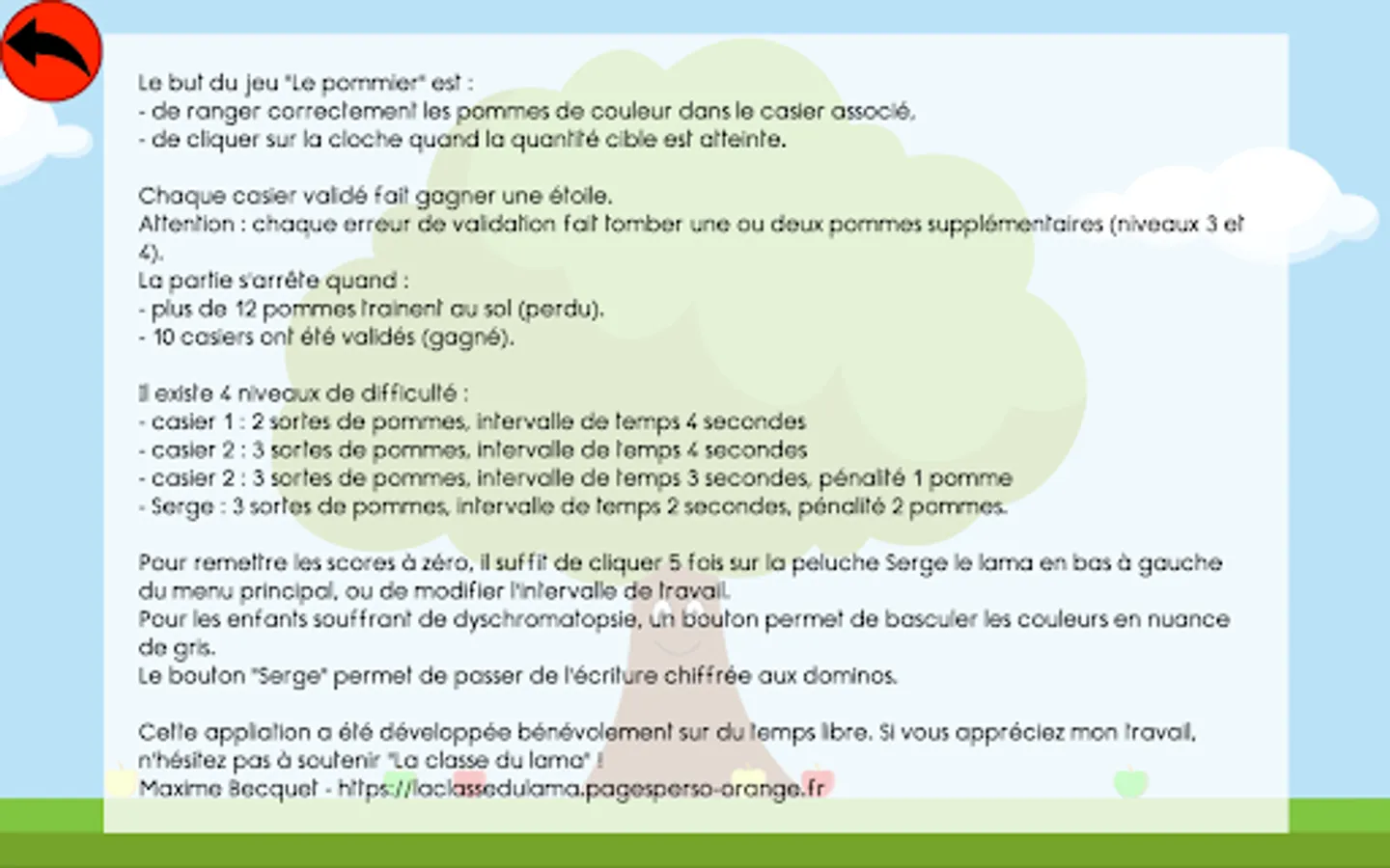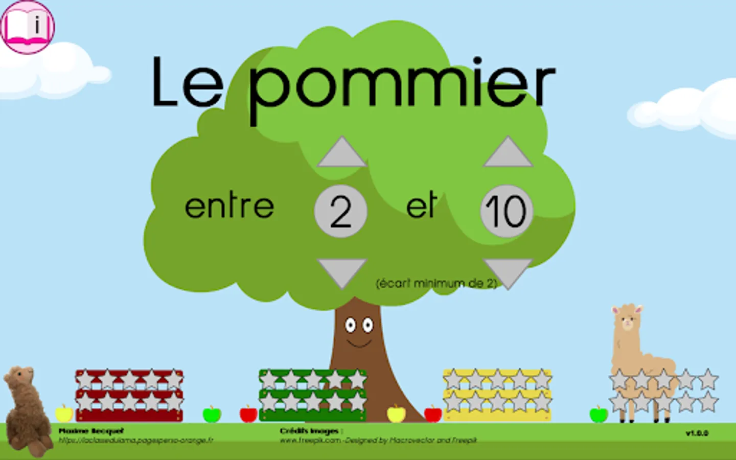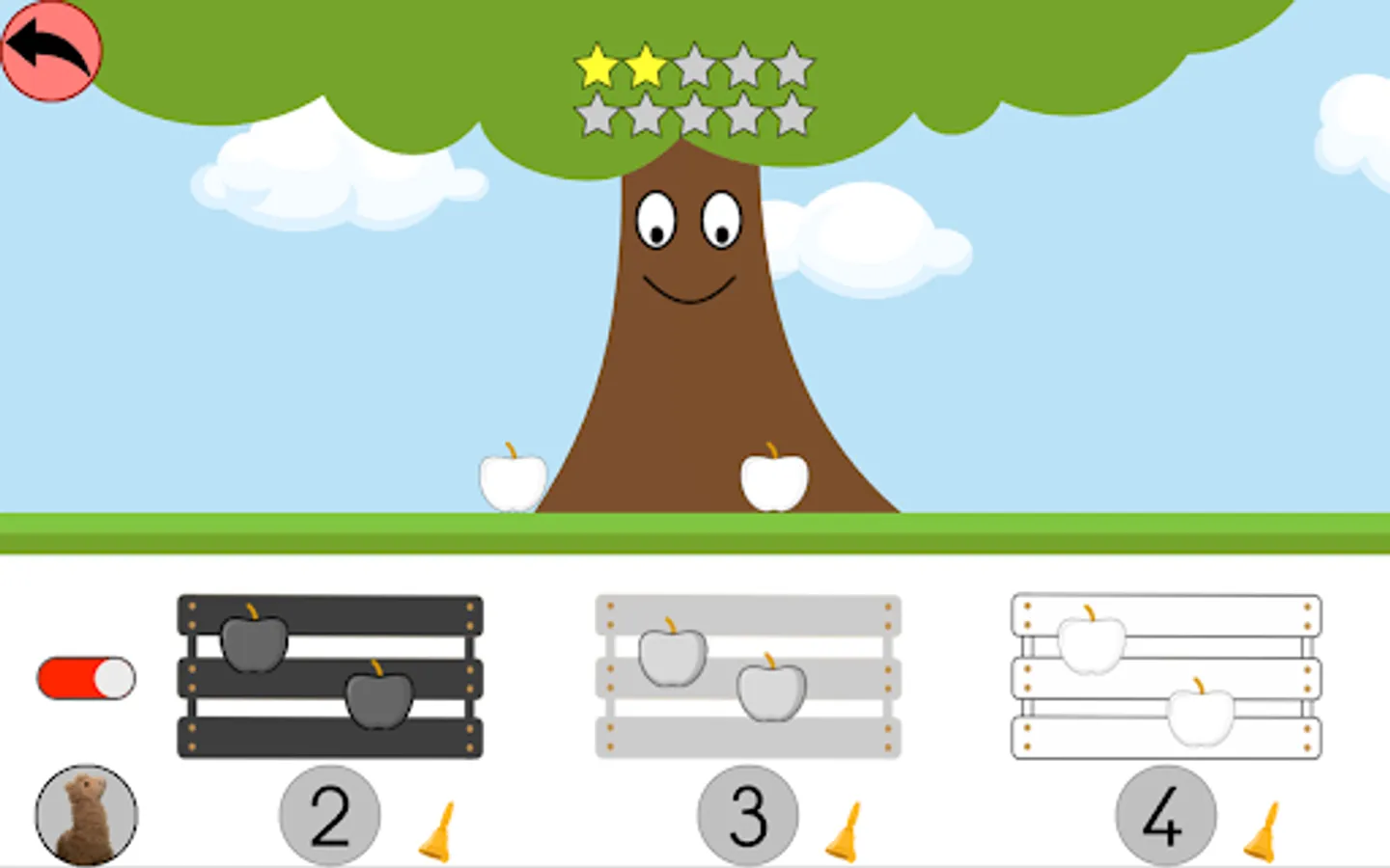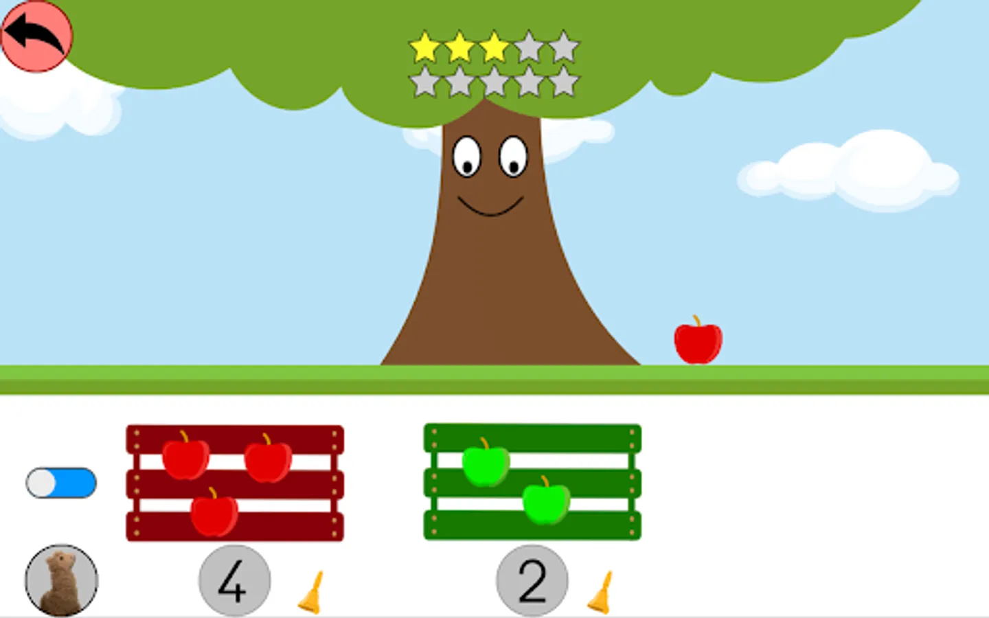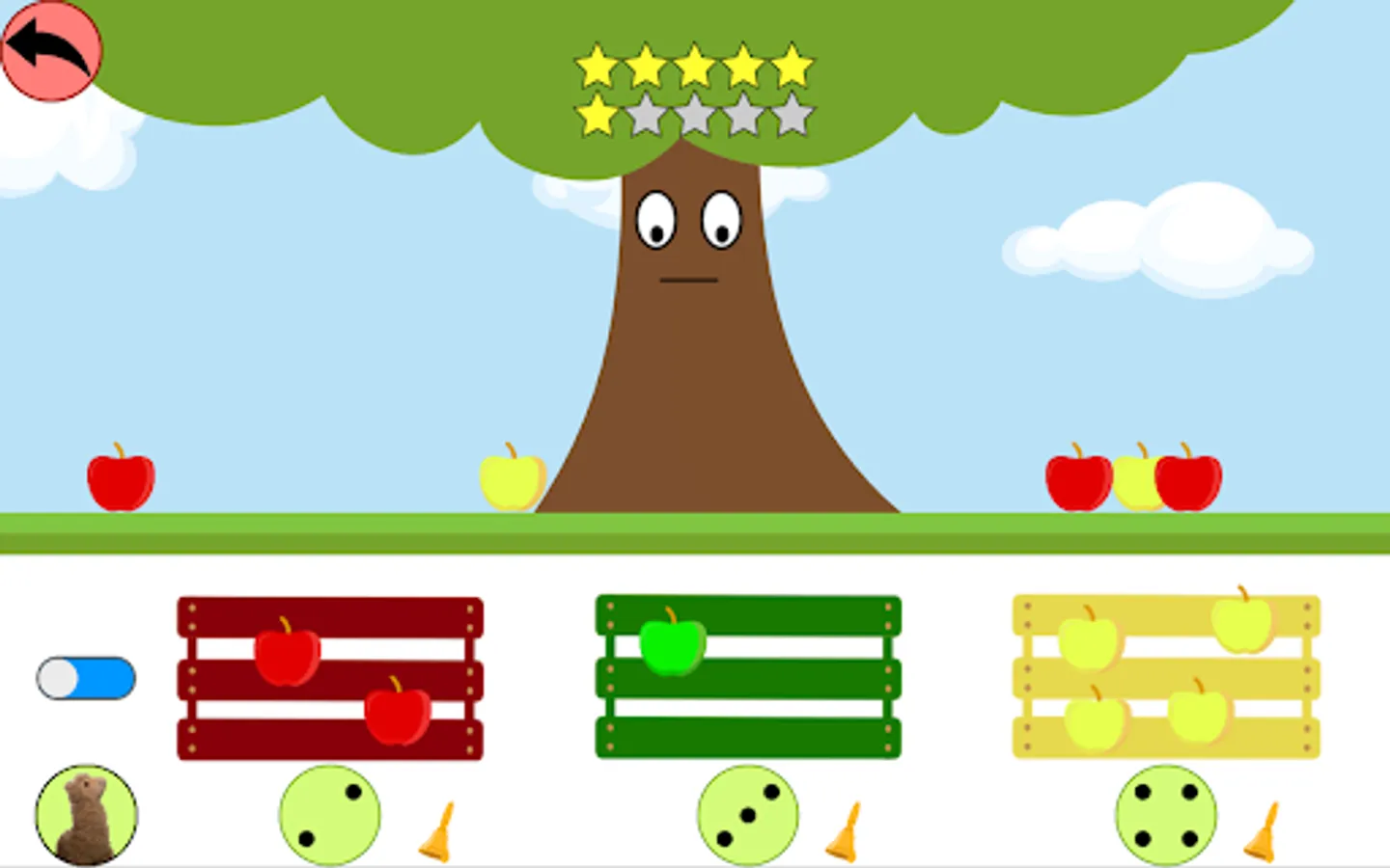 The game proposes to gradually group apples to make requested collections, in an adjustable interval between 2 to 10.