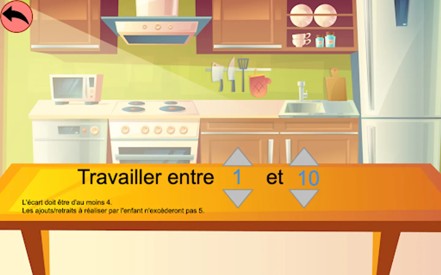 The child must indicate the number of elements to add or remove with the side buttons. The result is displayed in real time, before validation.