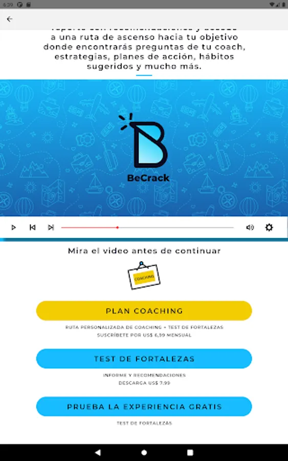 BeCrack is easy to use, 100% digital, always available and accompanying you wherever you are. In this coaching app you will find: