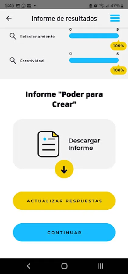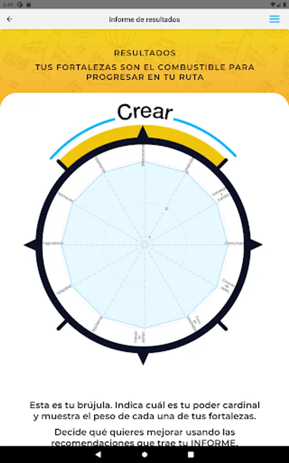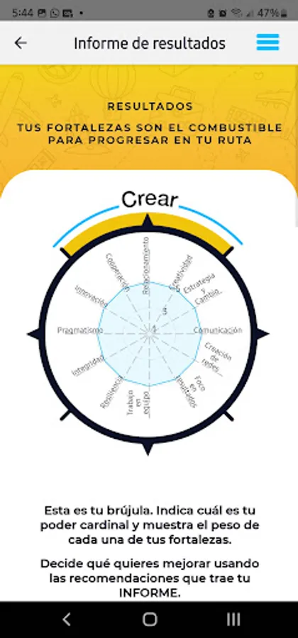 - Test to assess your strengths with recommendations, which you can download, so that you learn to count on you and increase your powers as an individual.