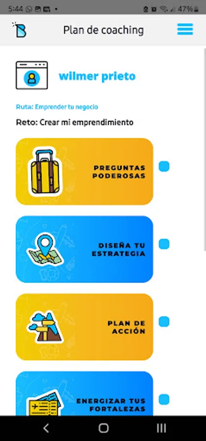 - Coaching plan with questions from the coach, strategies, menu of actions and programmable habits so that you achieve your goals and follow up on your results.
