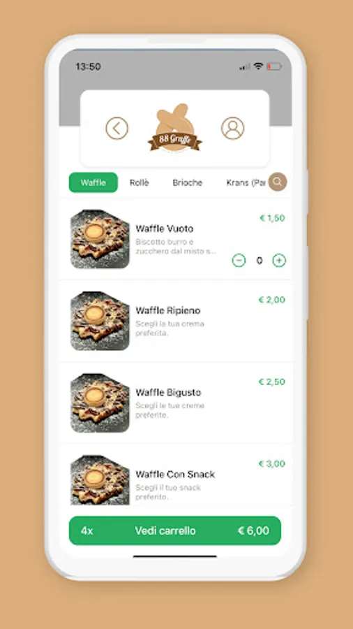 Do you want sweets at home in Afragola? Discover the 88 Graffe menu and order comfortably online. You can also pay by credit card!
