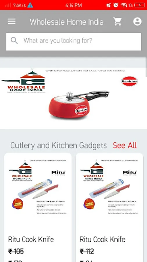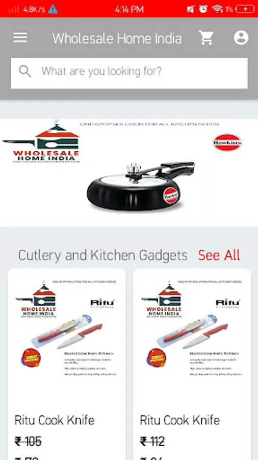 Wholesale Home India, India's biggest kitchen and home products platform brings the finest range of Cookers, Cookware, Cutlery, etc. from top brands like Hawkins, Chetak, Ritu, Ace, etc. at wholesale prices directly from manufacturers to your home.
