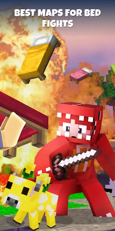 Bed Wars Mods for Minecraft is an application that contains skins, mods, maps, and servers for an epic game. Collect the entire collection of necessary weapons and other items that are needed to protect the bed. Build immense, robust structures, and try hiding your bed in the dungeons so other players can't get to it. Add-ons will allow you to choose from hundreds of beds the one that you like the most. Arrange epic battles with your friends and find out who is the best fighter among you!