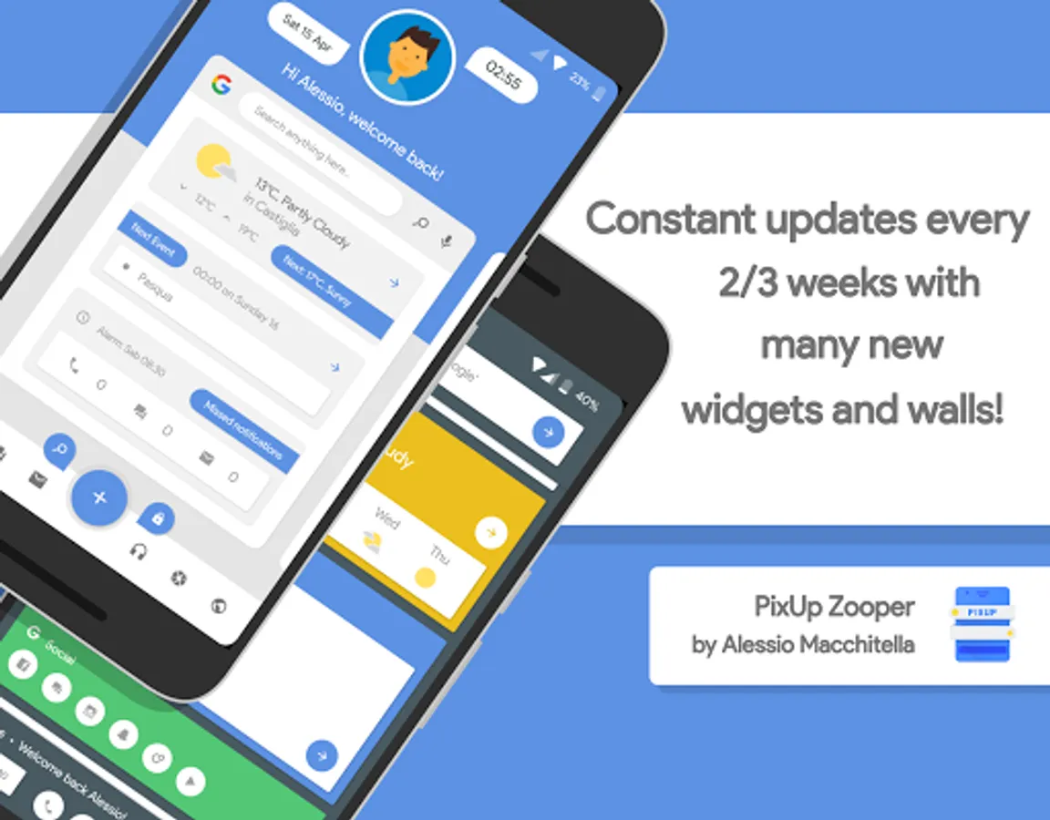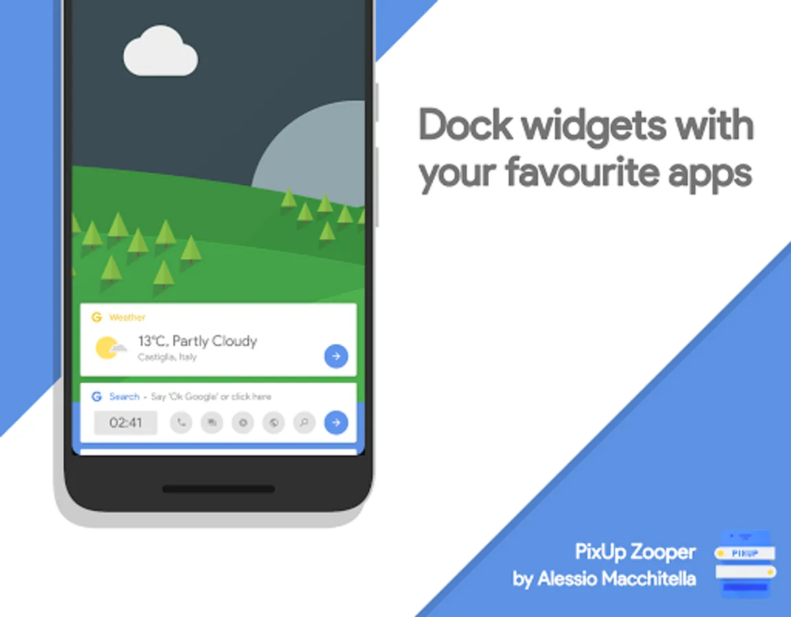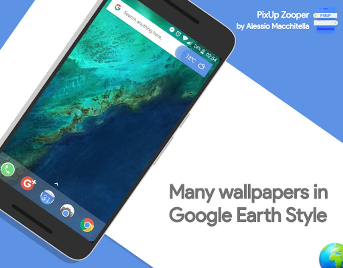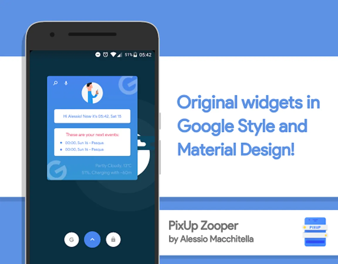 - The shortcuts apps in PixUp Zooper are: Google Apps, Google Calendar, Chrome, Google+, Google Maps, Phone / Camera / Gallery / Music / Settings (Samsung), Clock (Google), Whatsapp, Gmail, Weather Timeline and Shortcut Nova Launcher .