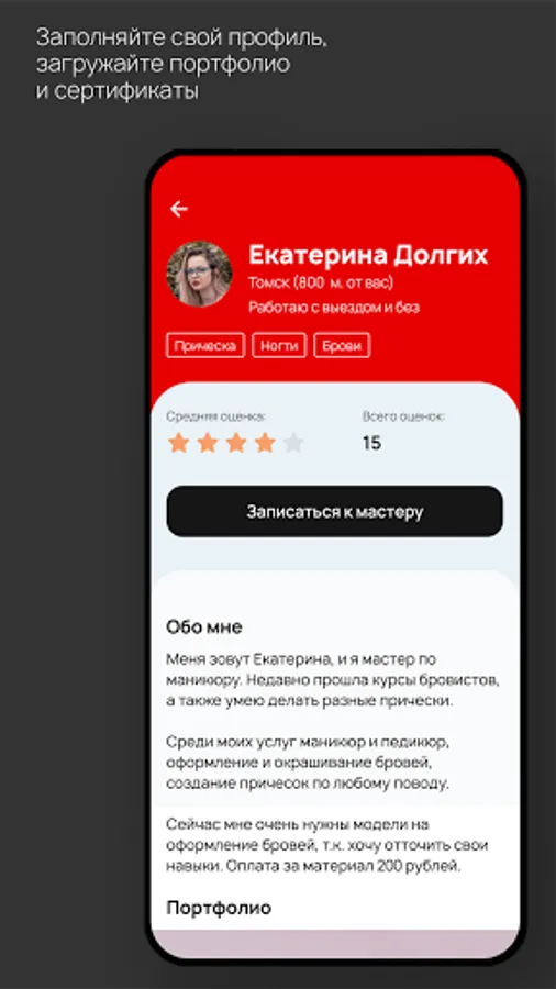 Beauty is available here and now: no need to waste time traveling and looking for quality services. Now you can find beauty masters when you need them. Anywhere and at a convenient time.