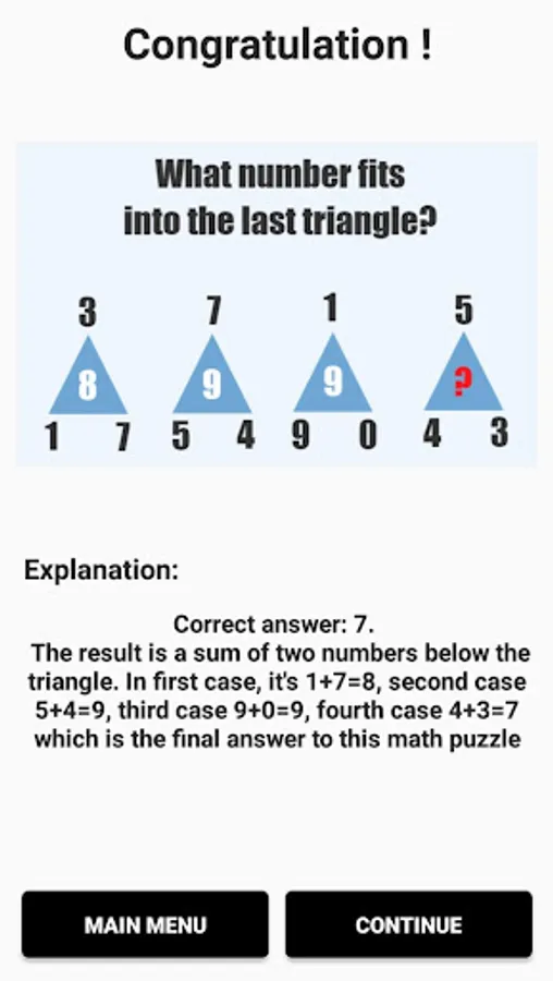 You will solve the relationship between numbers in the geometrical figures, and complete the missing numbers at the end. Every puzzle and math games have a different level and players who have strong analytical thinking ability, recognize the pattern immediately.