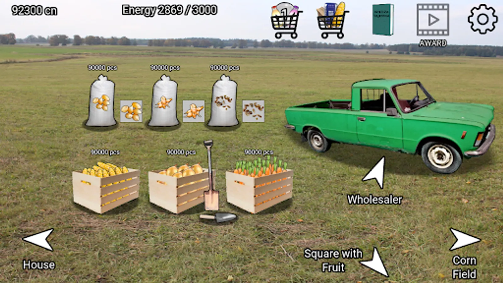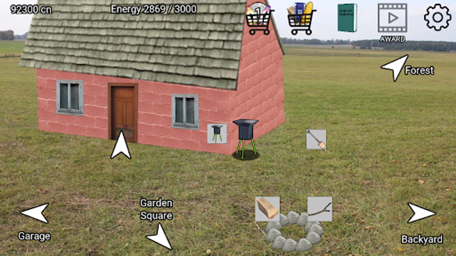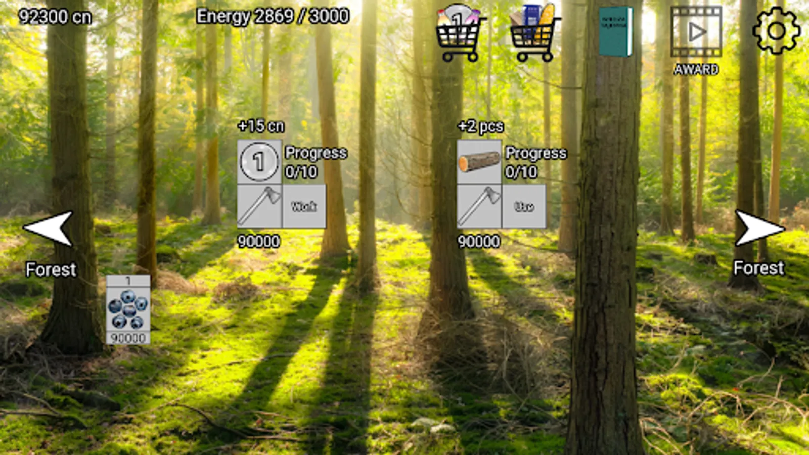 We start by collecting mushrooms, sticks and berries in the forest. We buy tools for the first money we earn from collecting.