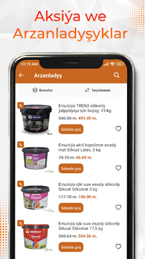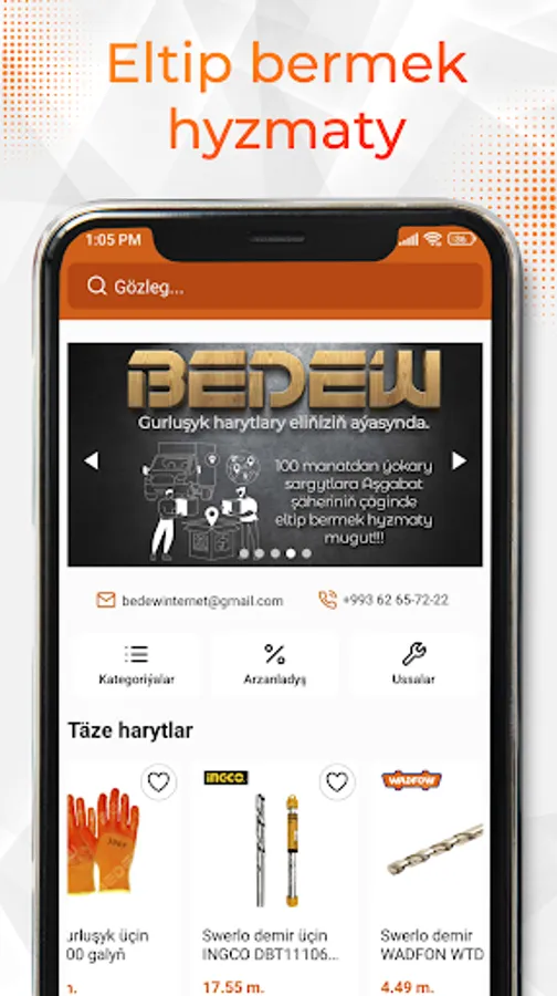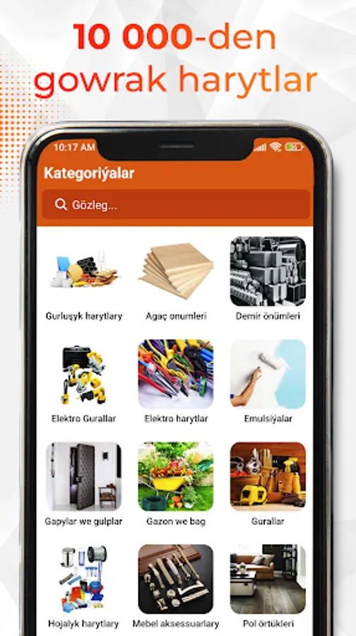 Gurluşyk we hojalyk harytlaryny öz el telefonyňyzdan sargyt ediň. 10000-den gowrak dürli gurluşyk harytlary sargyt edilen güni günibirin eltmek ýa-da Siziň özüňize öňäýly wagtda eltip bermek hyzmaty bilen. Bizde hemişe çüýden başlap elektrogurallara çenli giň haryt görnüşleri elýeterlidir.