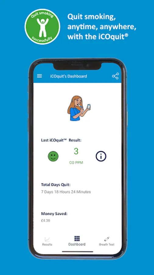 The iCOquit® Smokerlyzer® app is an aid to help people stop smoking, one breath at a time.
