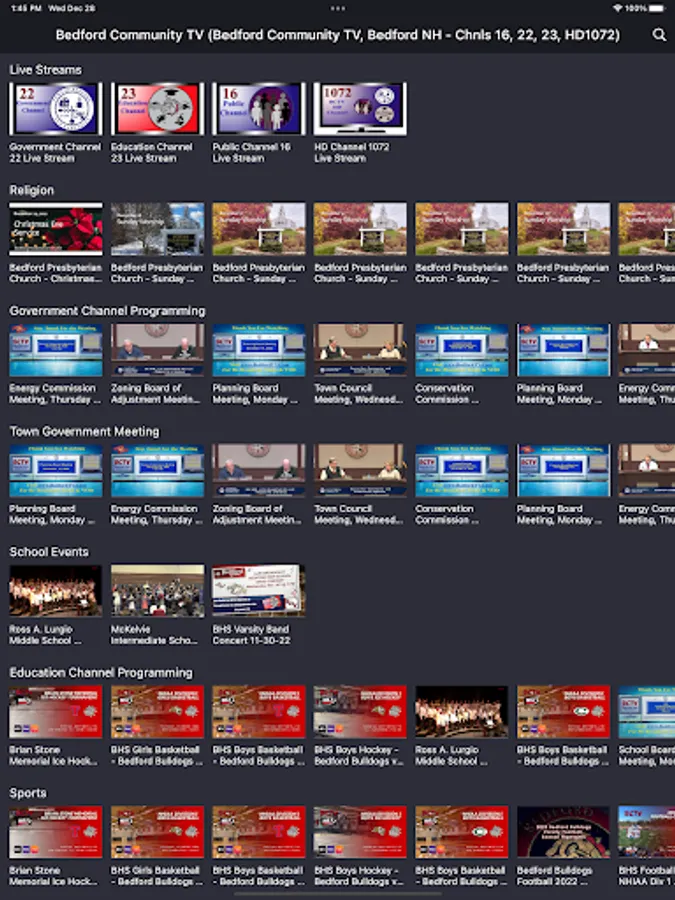 BCTV (NH) Bedford Community Television provides both live and pre-recorded programming available on the station's four separate channels.