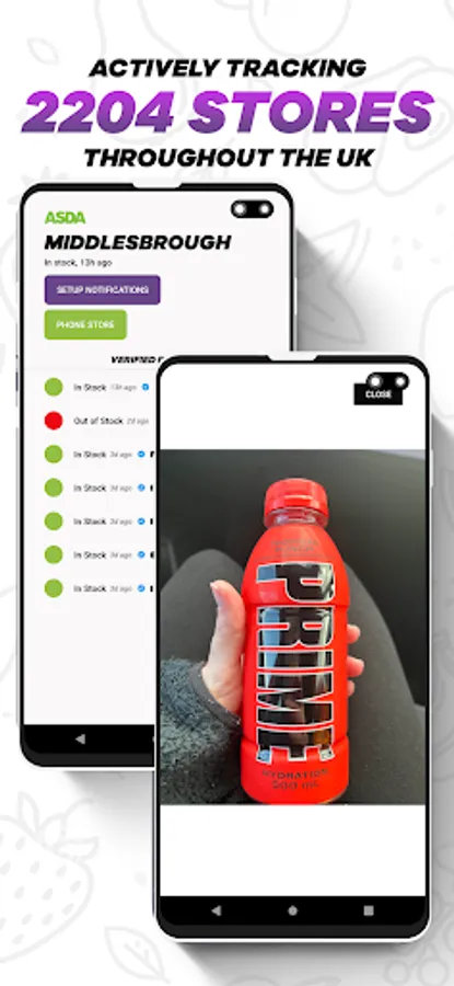 Prime is now here in the UK! Stocks disappear as soon as they come in though and stores are having trouble tracking what's available where - this is where Prime Tracker comes in. A team people monitor and call ASDA / ALDI / SPAR on a daily basis to supply the best possible Prime stock information, we also have a Discord server with over 12,000 users that we source information from. Prime Tracker delivers these updates to your phone, for your chosen stores, within 30 seconds of receiving these stock updates. Users can also submit stock status updates themselves, so we can source stock data from all over the UK in real time.