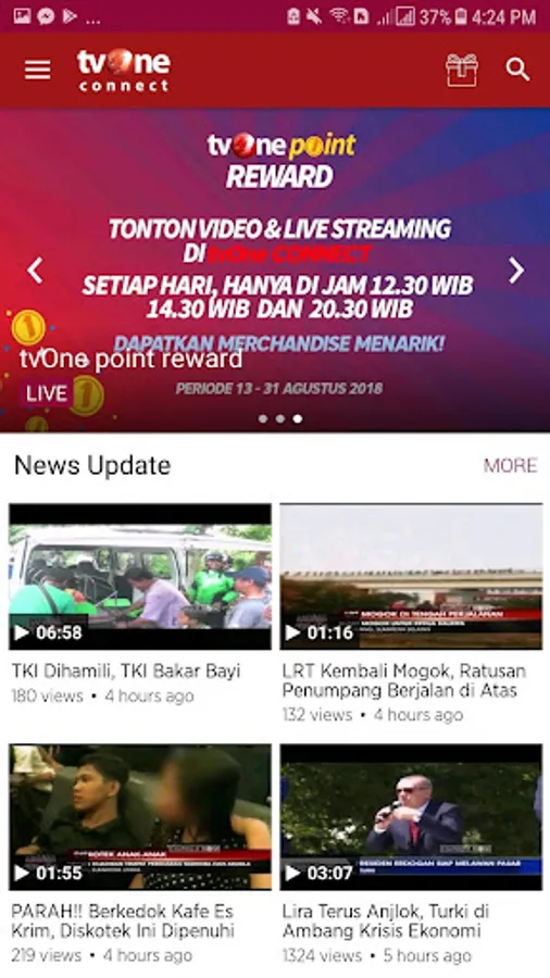 tvOne Streaming - you can always access the broadcast of tvOne in real time through live streaming on your smartphone.