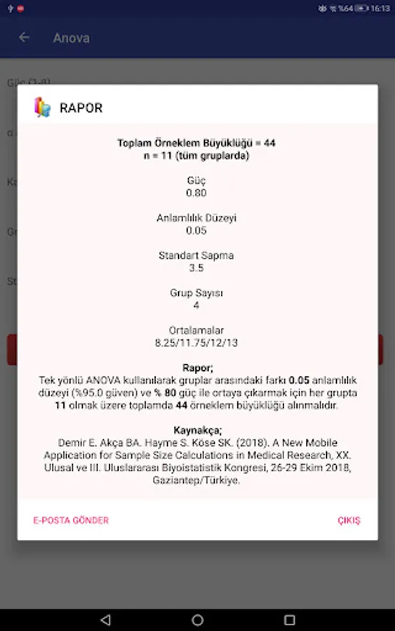 With this mobile application, researchers will be able to easily calculate the number of samples they will use in their studies and use the report they received from the mobile application in their ethics committee applications.