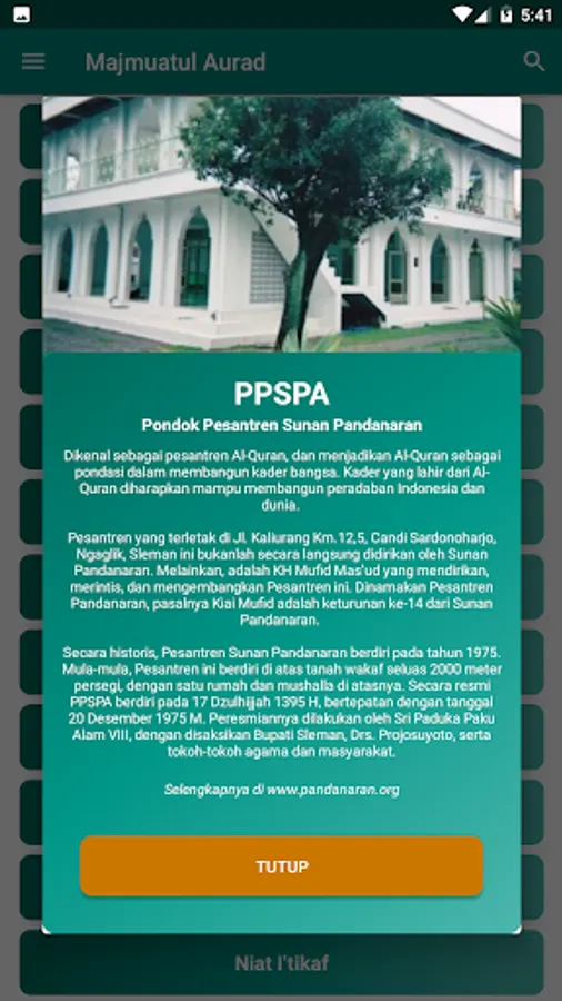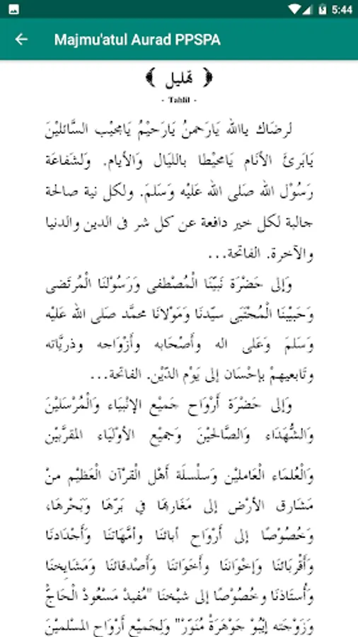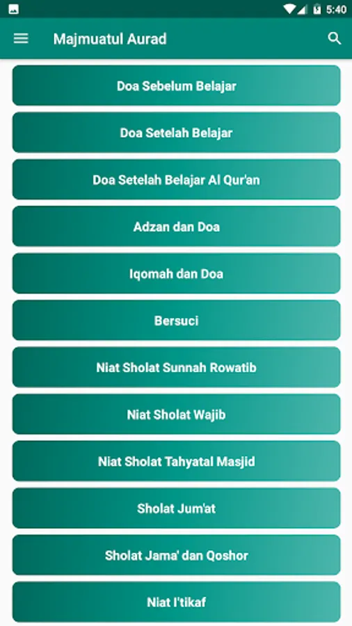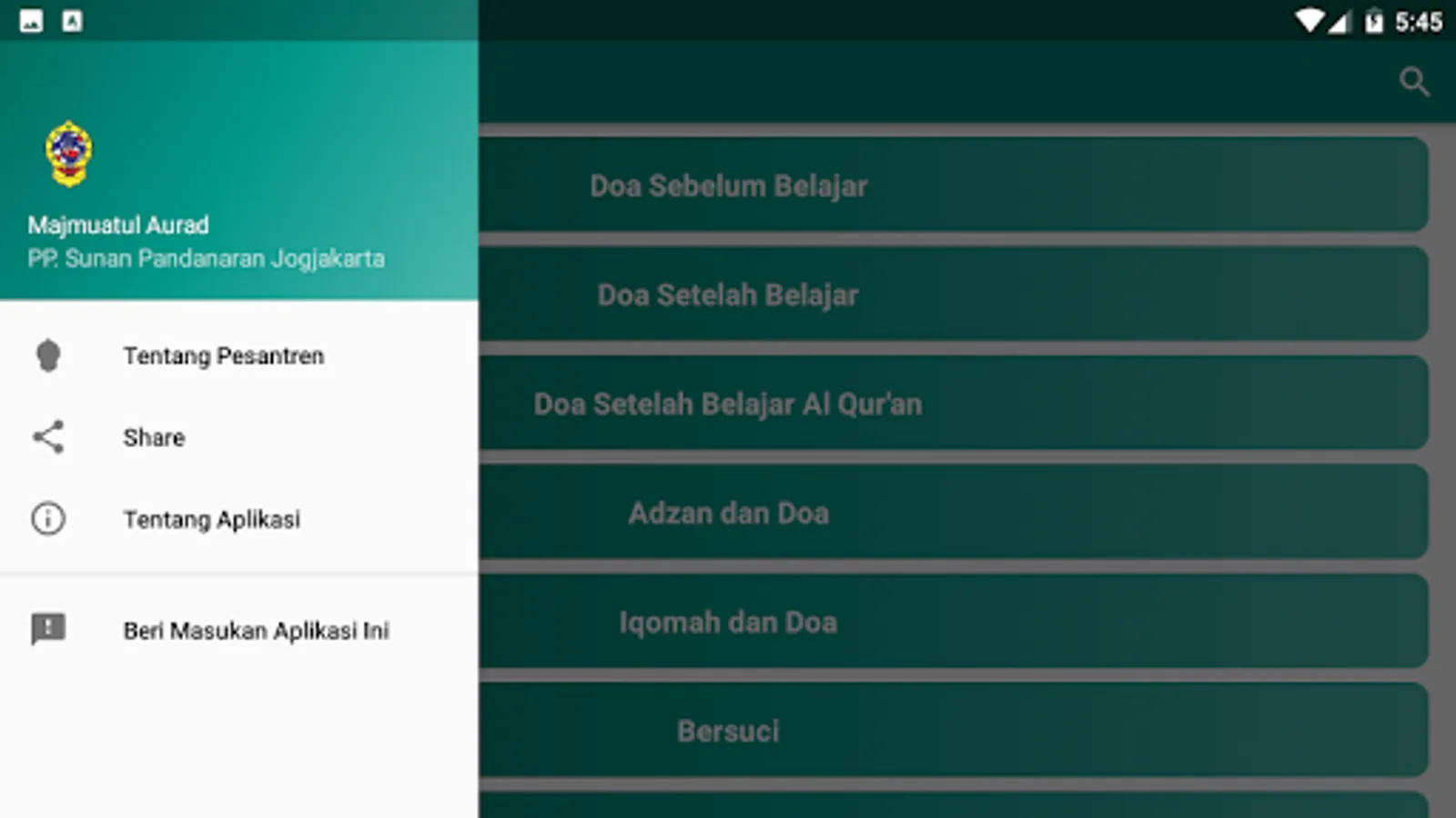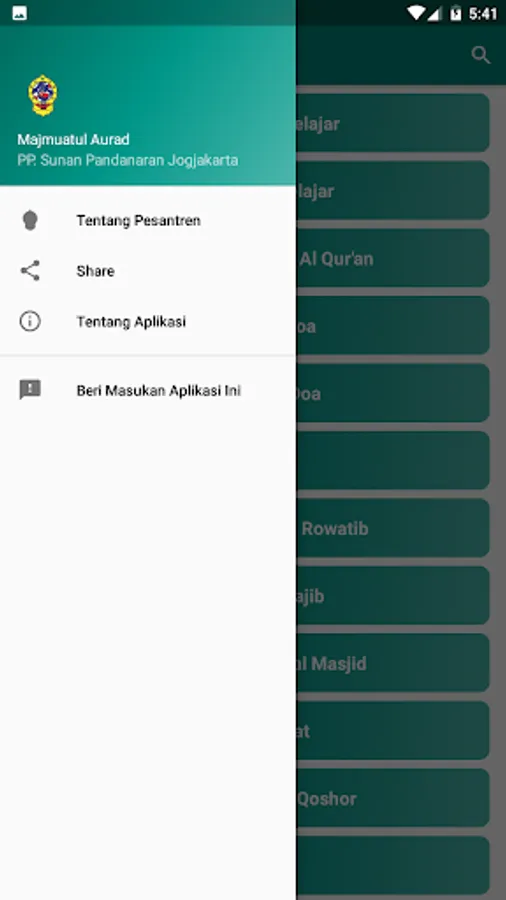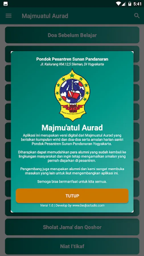 This application is a digital version of Majmuatul Aurad which contains a collection of wirid and prayers and daily deeds of students of the Islamic Boarding School of Sunan Pandanaran Yogyakarta.