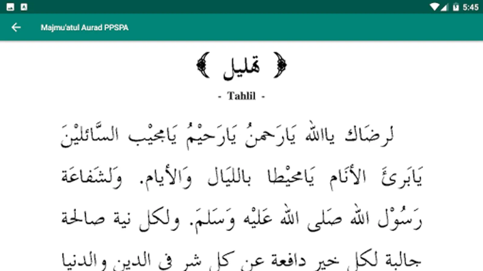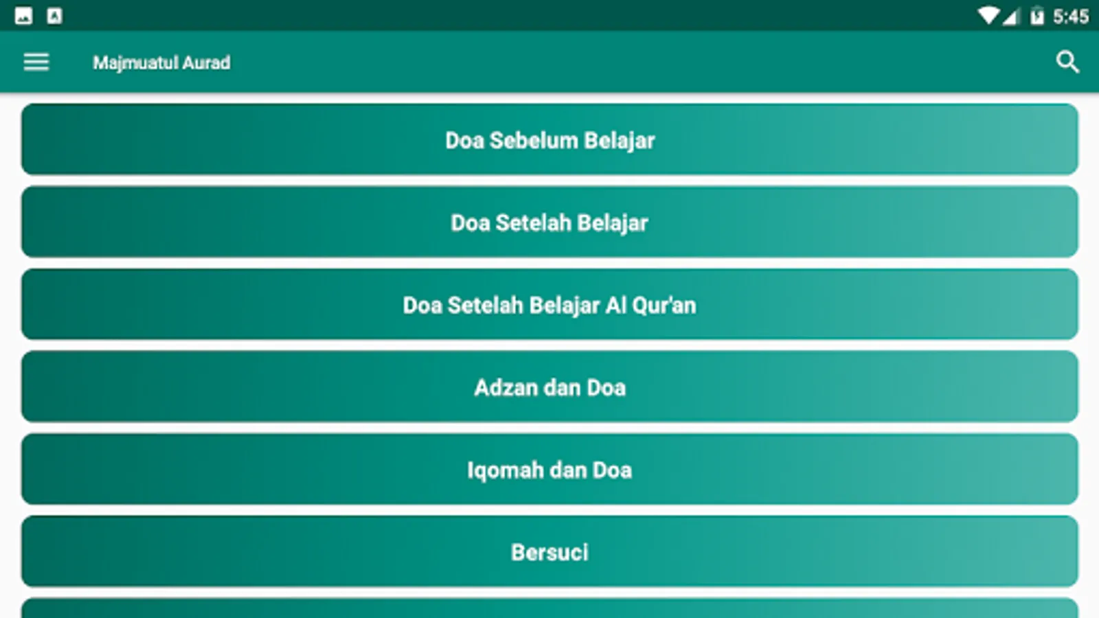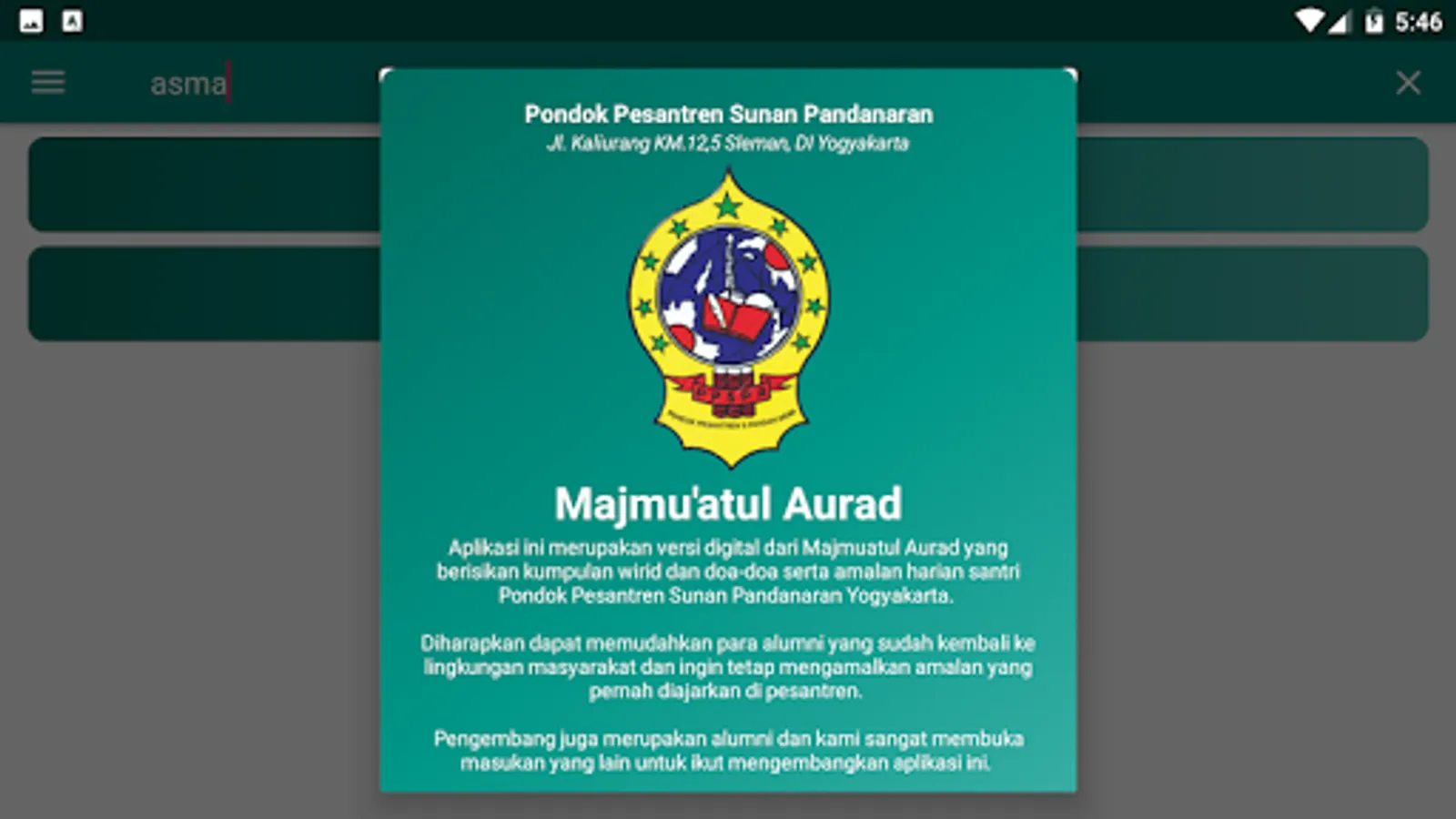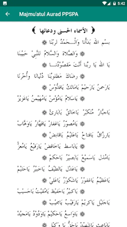 This application is a digital version of Majmuatul Aurad which contains a collection of wirid and prayers and daily deeds of students of the Islamic Boarding School of Sunan Pandanaran Yogyakarta.