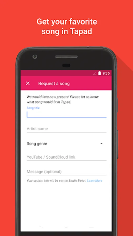 E-mail with dev, request songs and features. Play your favorite song on Tapad!