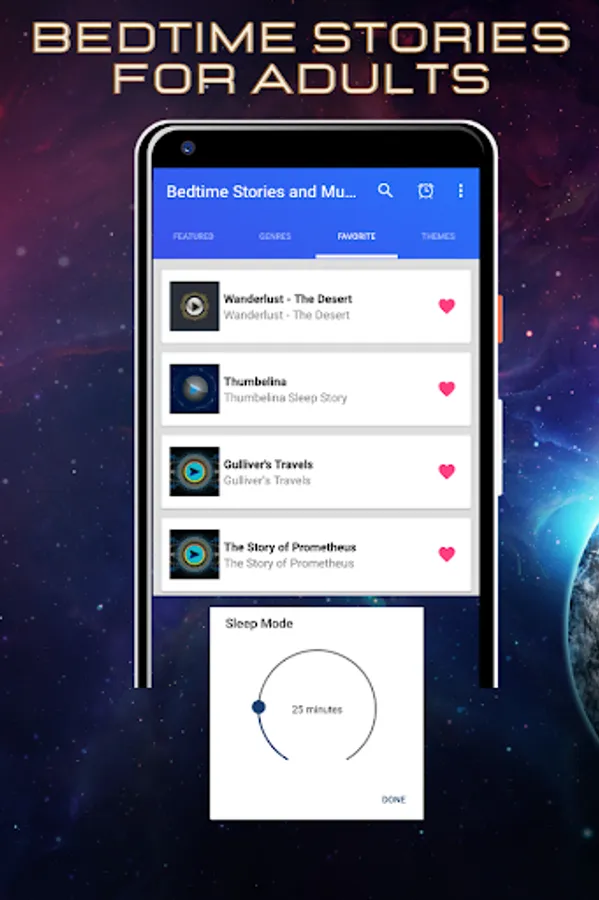 You can classify the story or music to relax and sleep as a favorite and you will always have it on hand to listen faster. All this available in audio bedtime stories for adults application.