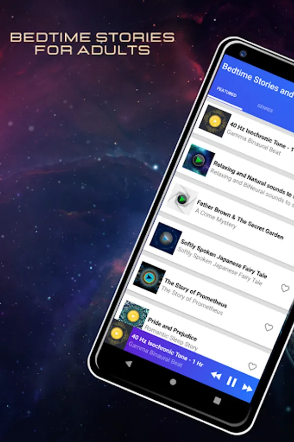 Download the "Bedtime stories for adults - sleep music" app to sleep soundly if you have trouble falling asleep. Or if you just want to relax the accumulated stress of a long day at work, use one of the stories or music that has been carefully selected so that you can clear your mind and calm your anxiety. Nothing is better that going to bed with audio stories, bedtime stories for grown up.