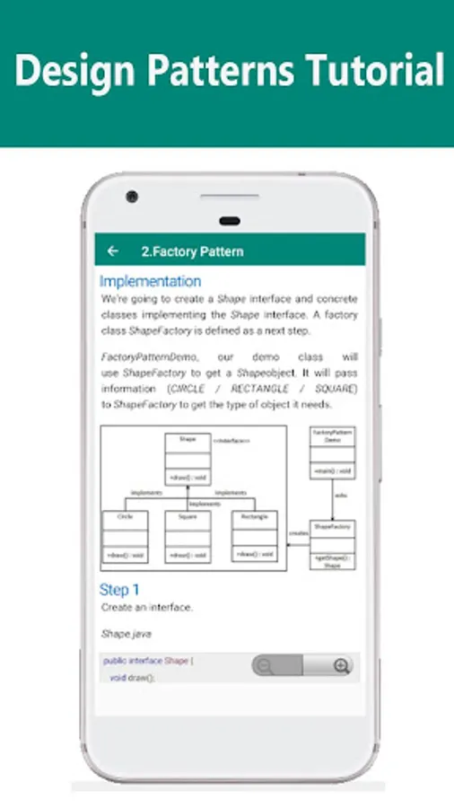 This App will take you through step by step approach and examples using Java while learning Design Pattern concepts.
