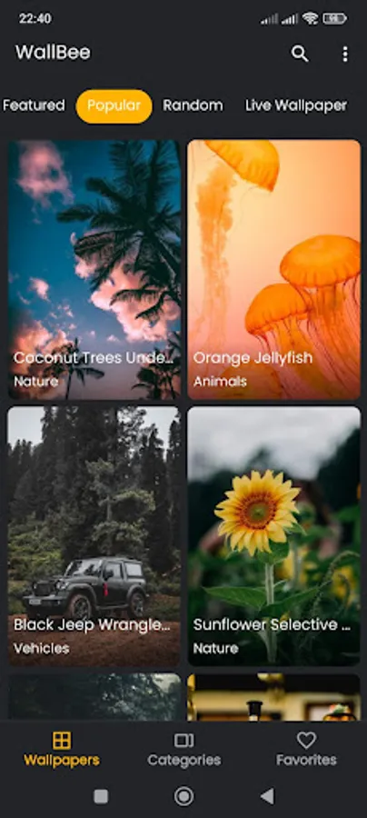 Download WallBee wallpaper application and get high quality wallpaper for lock screen, full hd home screen and backgrounds, 3D & 4D live wallpapers and more.