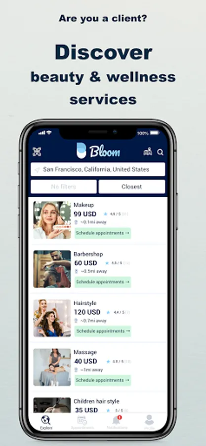 Are you working at a salon or are you independent? Bloom enables clients to discover your services and to schedule appointments online! Manage all your client appointments in the Bloom app.