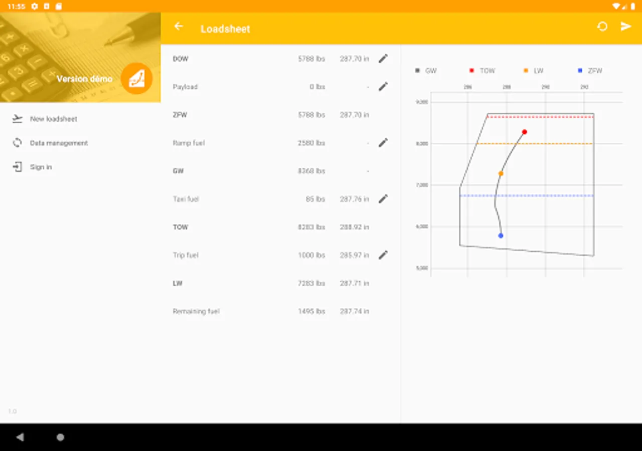 Aeronautical weight and balance application to be use with Bee Air