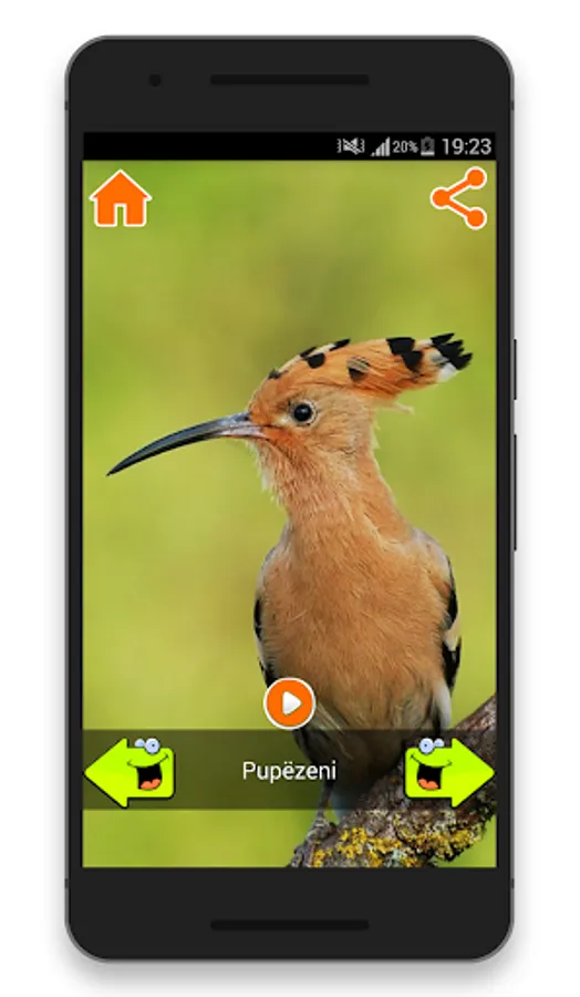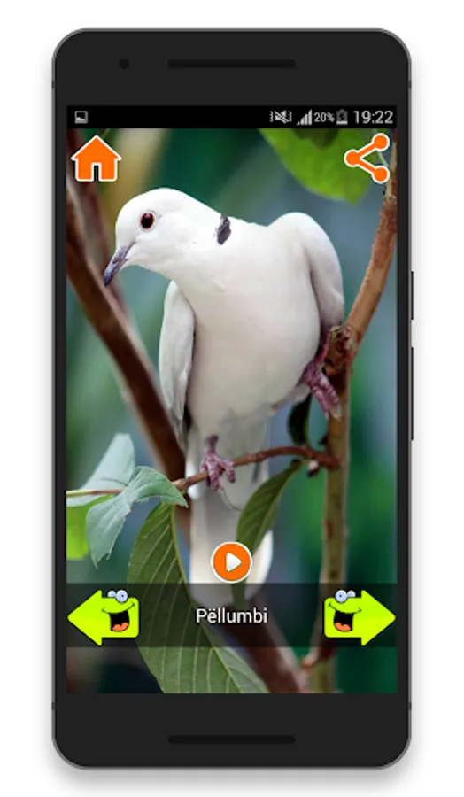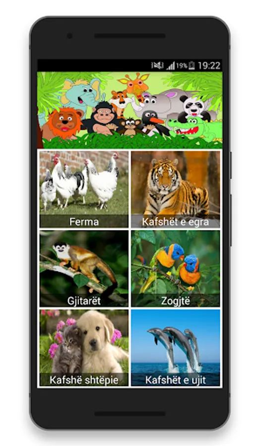 Në këtë aplikacion kafshët dhe shpendët janë të ndara në kategori: