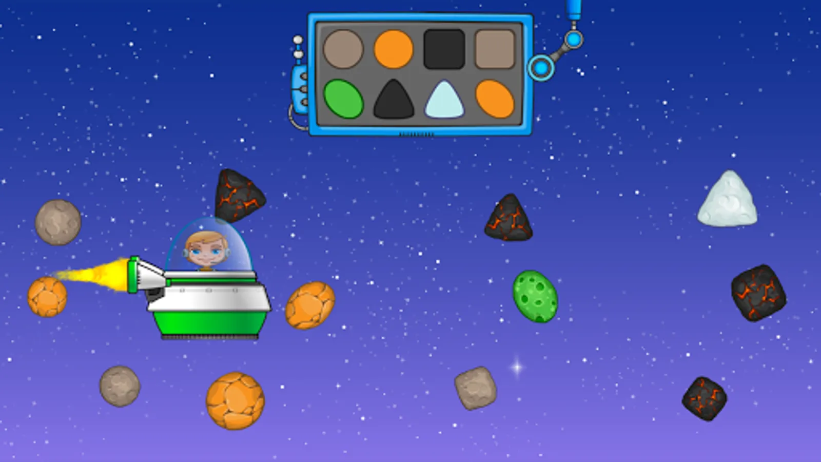 7. «At the edge of the universe». Now it’s important for the children to help Jack clear the way for the constructed spaceship. The task will be able to complete the children and 3, and 5 years.