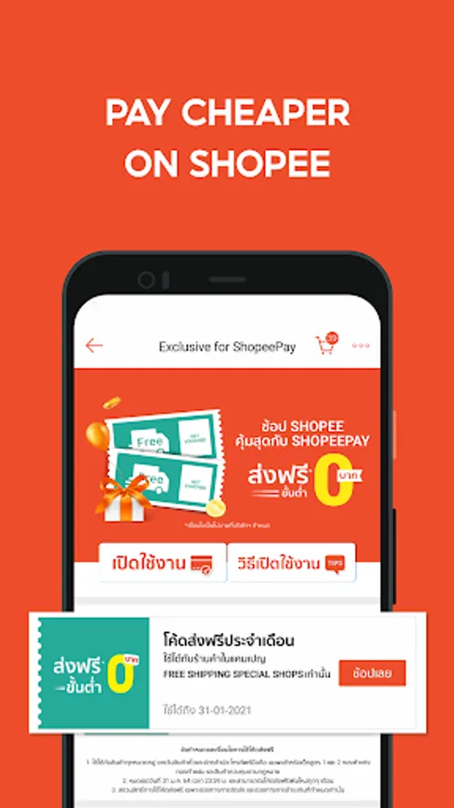 ShopeePay - Thailand's leading Mobile Wallet with the most secured, smart and simple payment to your cashless lifestyle. Bringing you nationwide privileges from leading online and offline merchants to your smartphone.