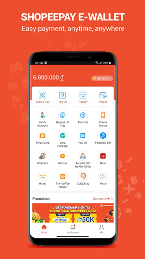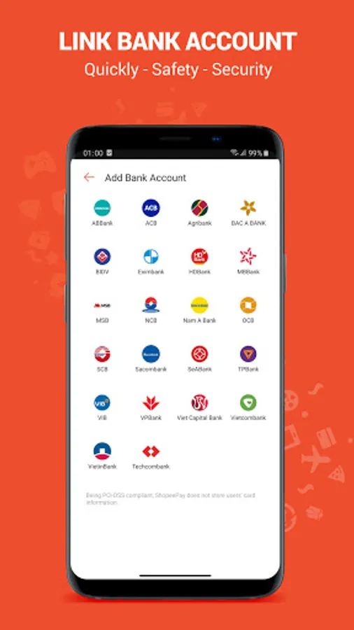 ShopeePay e-wallet is developed based on modern technology standards, ensuring that all personal, banking and payment information is stored safely and securely with PCI DSS Standard.