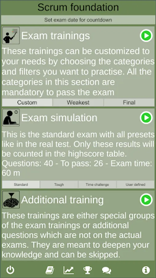 This App monitors your training and adjusts the simulations according to your training progress. Different training methods and exam simulations support your effort to pass the exam on the first try.