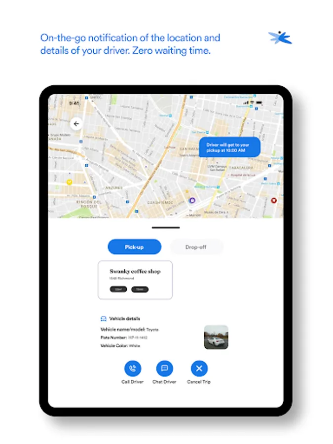 • The driver will greet you and check your ID before you ride.