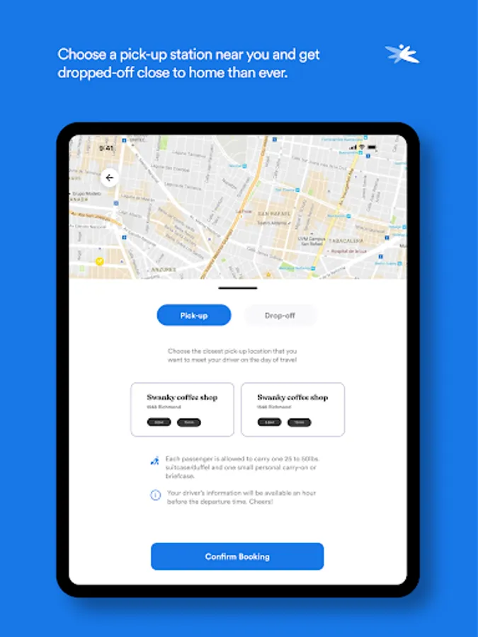 • Drop off your passengers at their chosen drop-off location along your route.