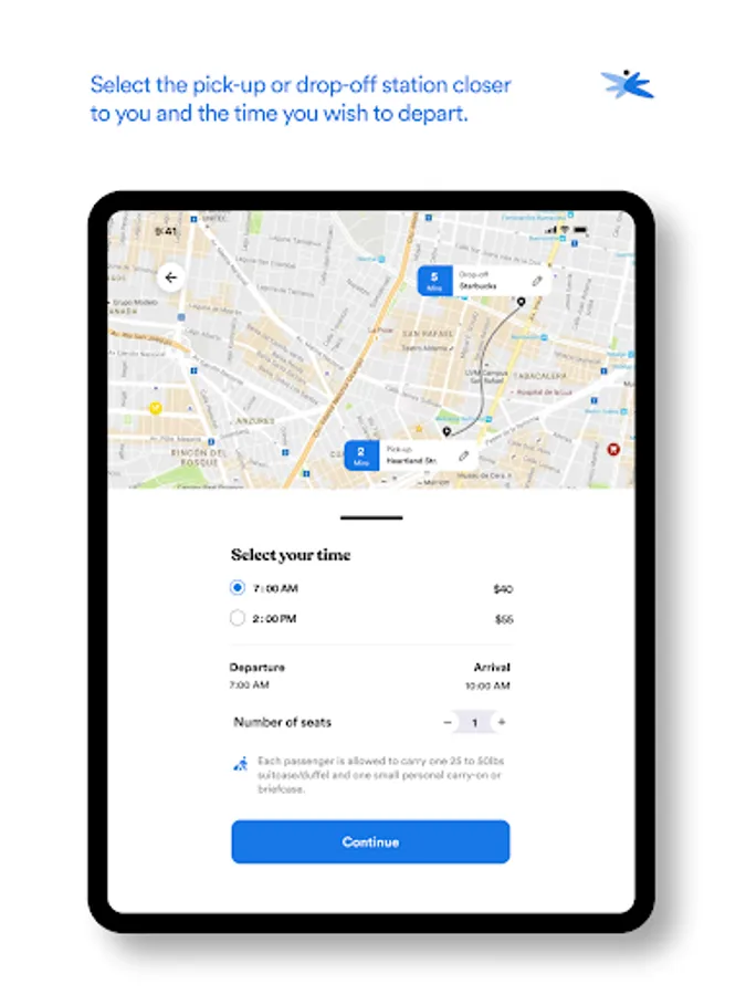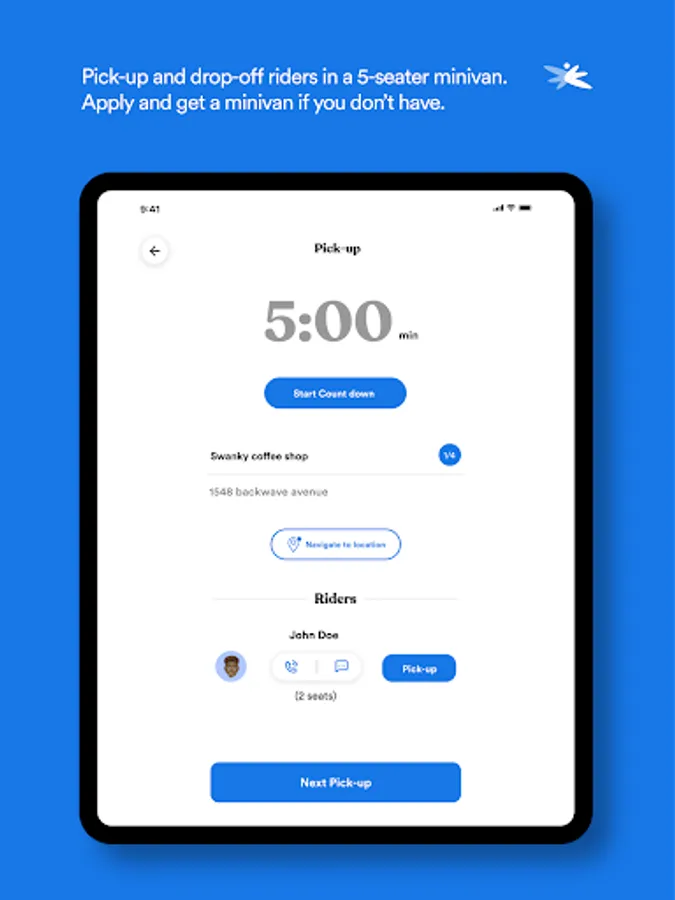 • Stop at the pickup along your route to pick up your passengers.