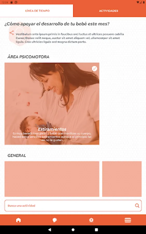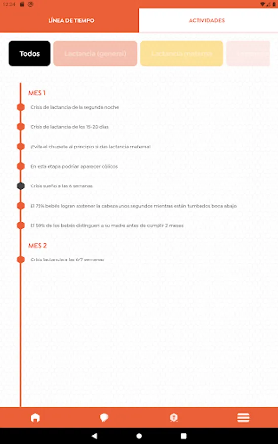1. By means of a time line we dose the topics and issues that generate the most doubts for families in each of the stages, together with proposals for activities proposed to accompany the correct development of the baby.