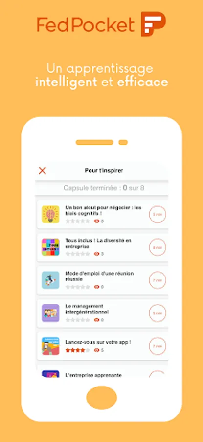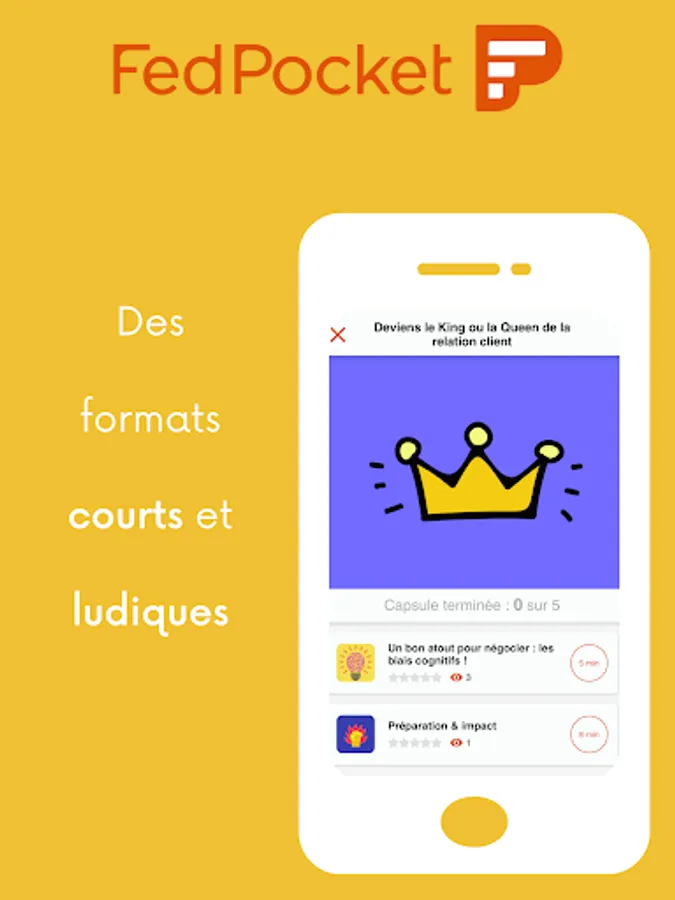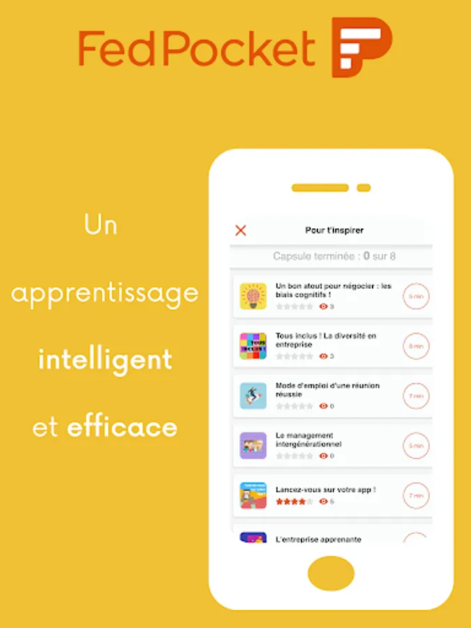 FedPocket is a mobile learning application, accessible on smartphone, tablet and PC, dedicated to enriching knowledge for anyone working in the Human Resources and recruitment sector. Discover, learn, review, train: all this is made possible thanks to micro-content or capsules, quizzes, challenges and videos. FedPocket enriches and energizes learning, which can take place before, during and after the highlights of your training, but also by providing access to capsules for inspiration on a variety of subjects.