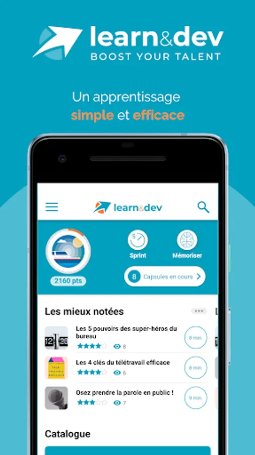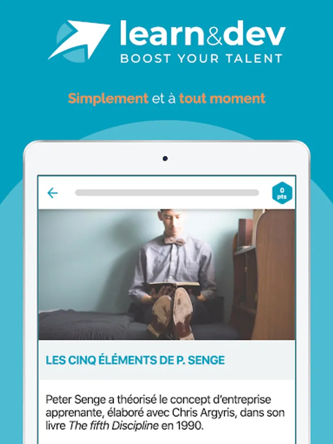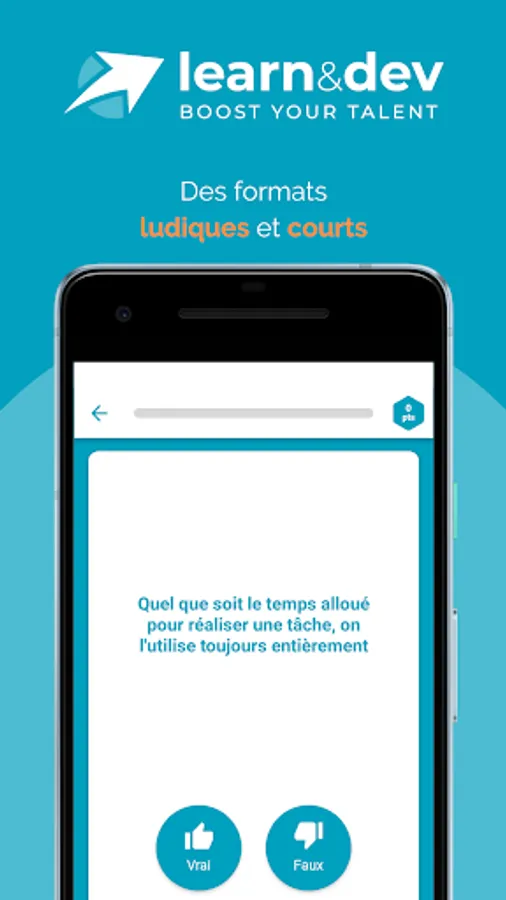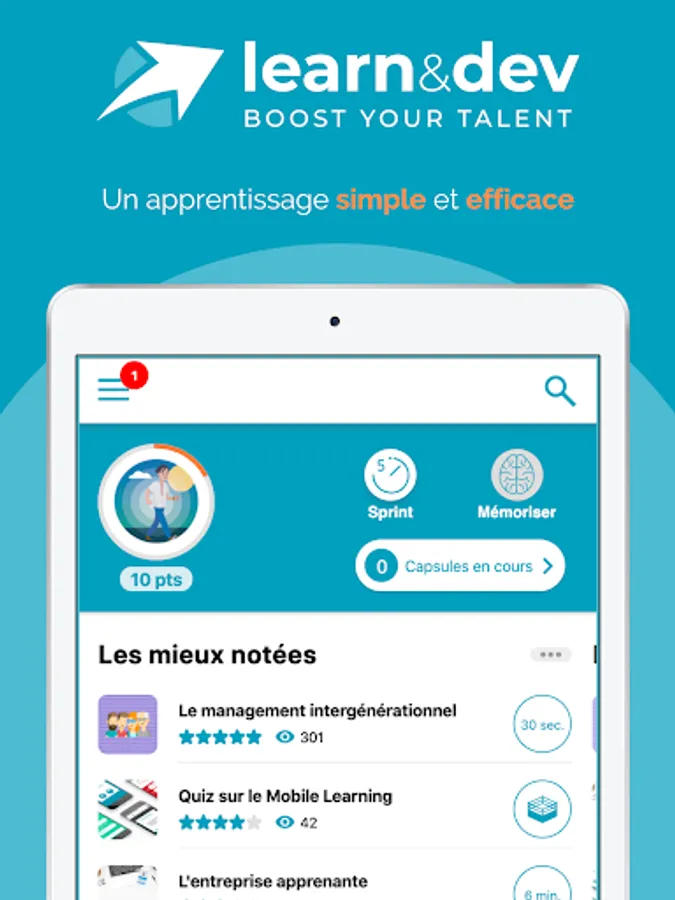 A digital training application dedicated to employees, available on smartphones and tablets, allowing online and offline use.