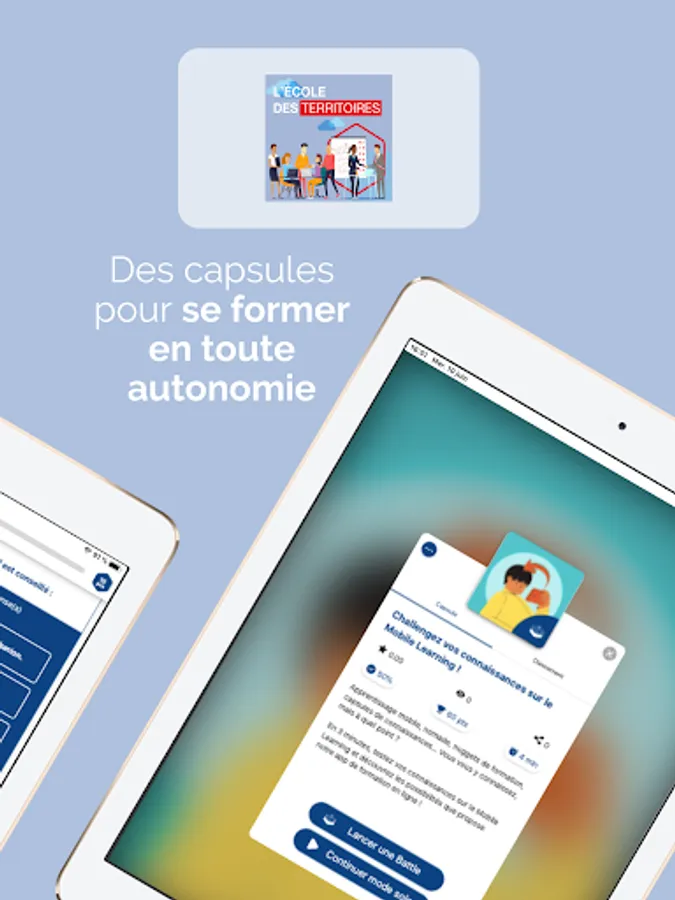 The Mobile Learning EDT Training application makes it possible to offer innovative, mobile and intuitive professional training on territorial development! Everything has been designed to optimize the anchoring of knowledge over the long term: