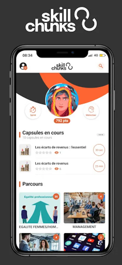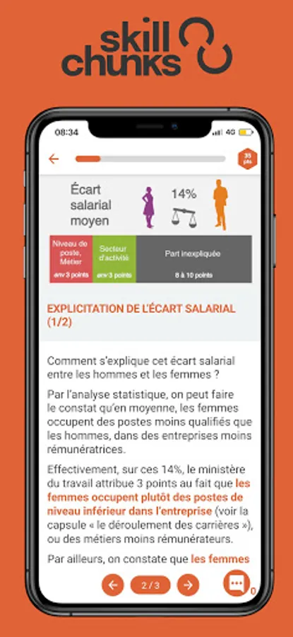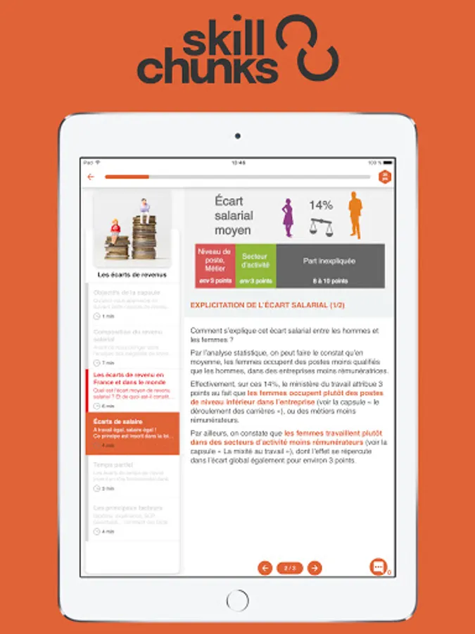 The pedagogical approach is that of micro-learning: the courses are organized in learning capsules, which present the training content using various types of media: texts, images, videos, podcasts, etc. Learner interactions s with content are also at the heart of the application, via a large number of activities (quizzes, games, etc.) which punctuate the courses.