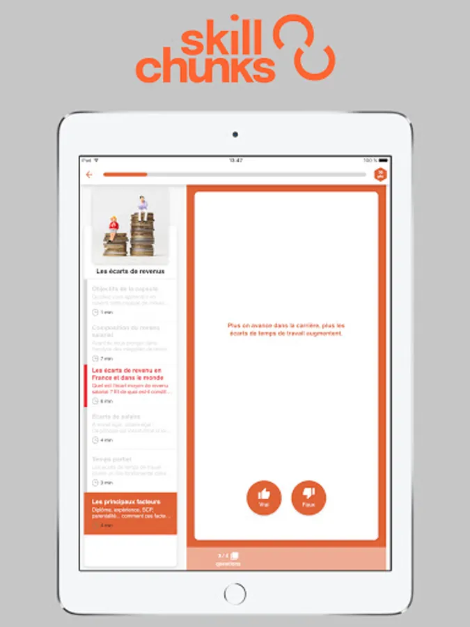 The SkillChunks application makes it possible to offer engaging, intuitive and fun learning paths, to deploy massive awareness / training actions within organizations.